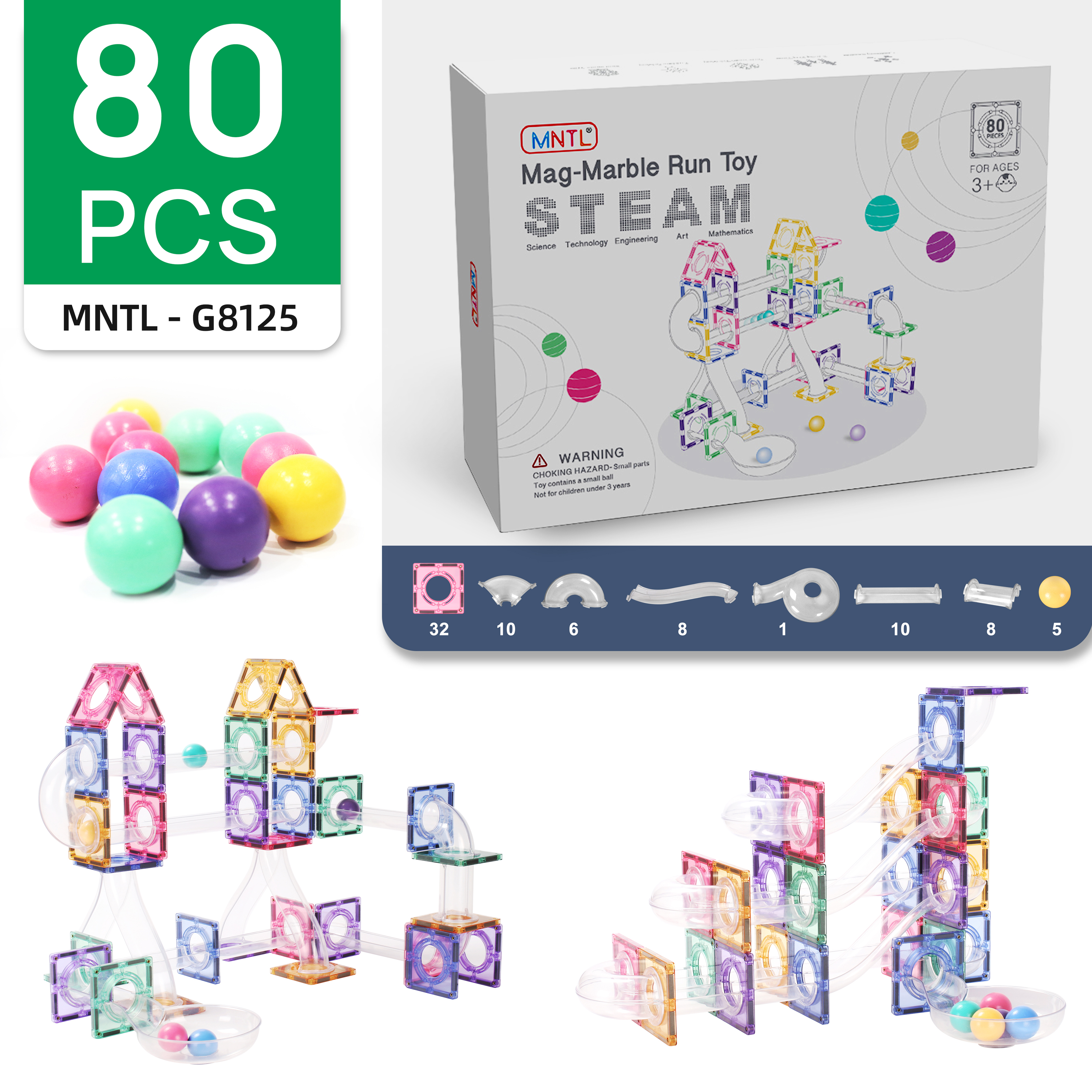 MNTL 100pcs Marble Run Magnetic Tiles Educational Toys for kids