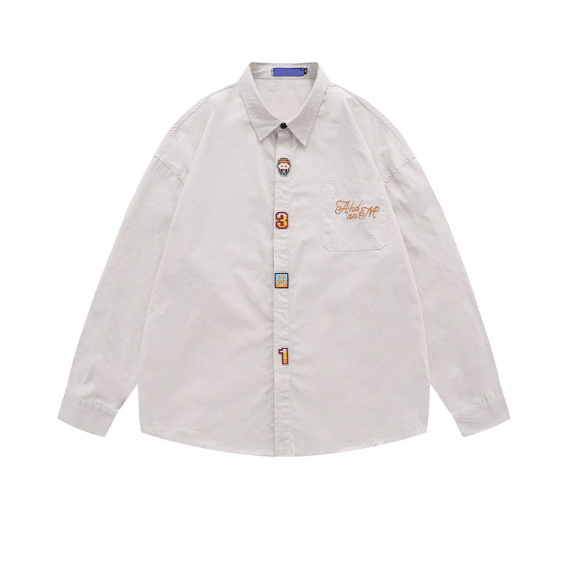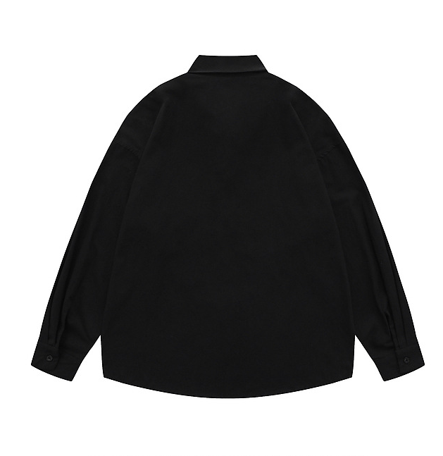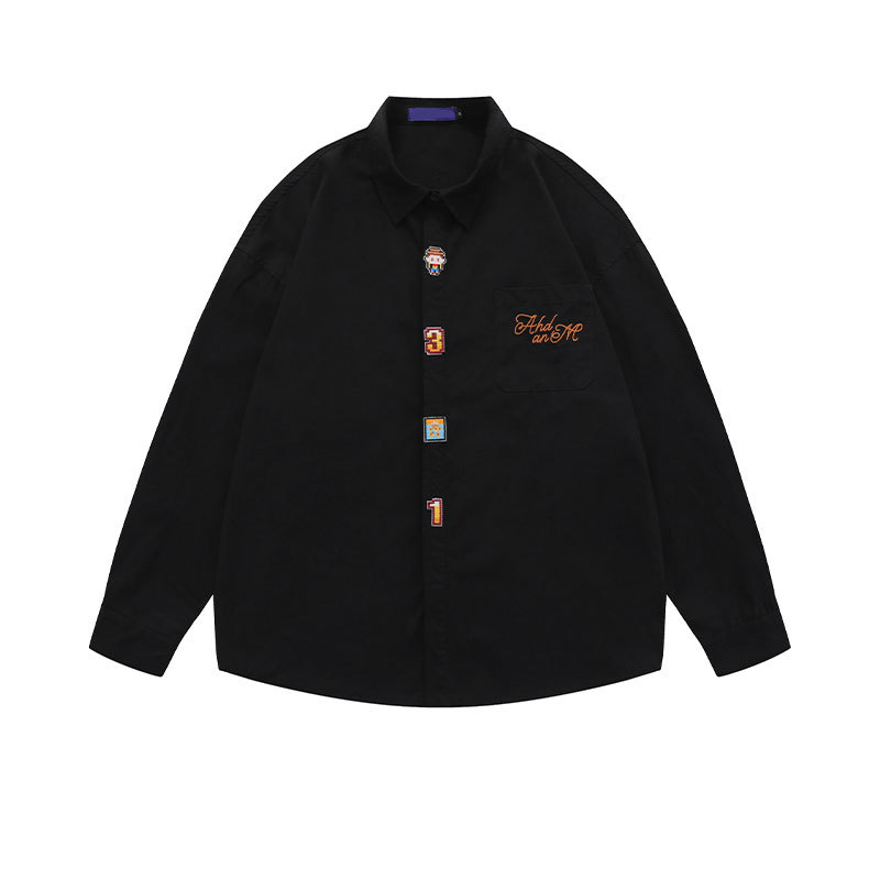 Item | Japan style Plus size men's solid color embroidery logo long sleeve shirt |
