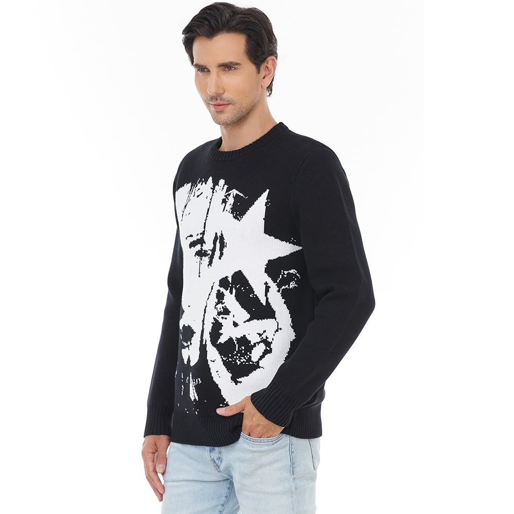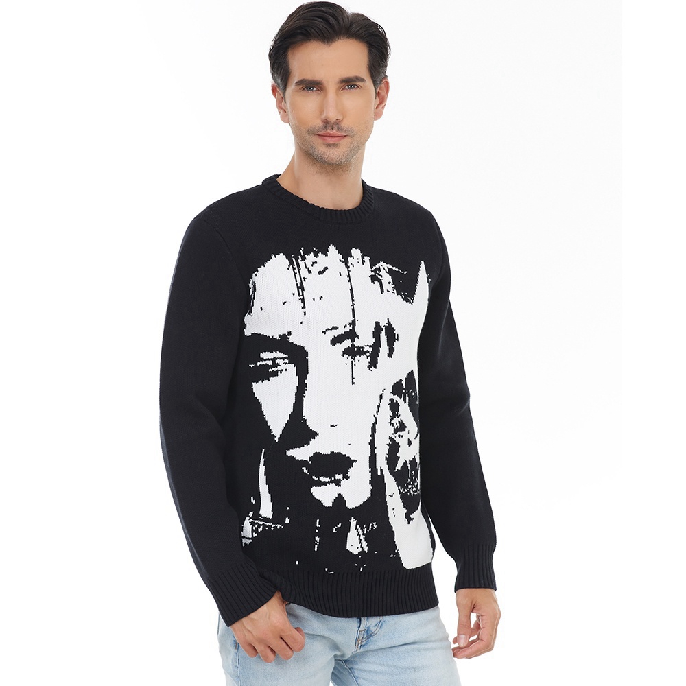Custom Logo Oem & Odm Men Sweater Jacquard Pattern Knitwear Crew Neck Pullover Knit Top Winter Cotton Custom Men Knitted Sweater