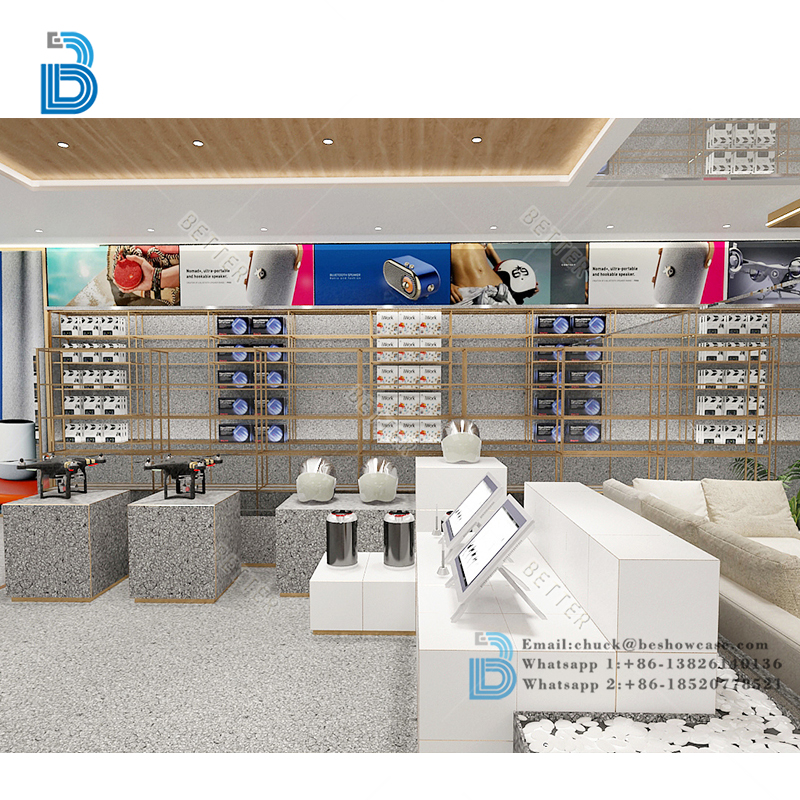 Latest Blue Cell Phone Display Showcase Design Modern Custom Mobile Shop Interior Decoration Ideas For Phone Accessories Store