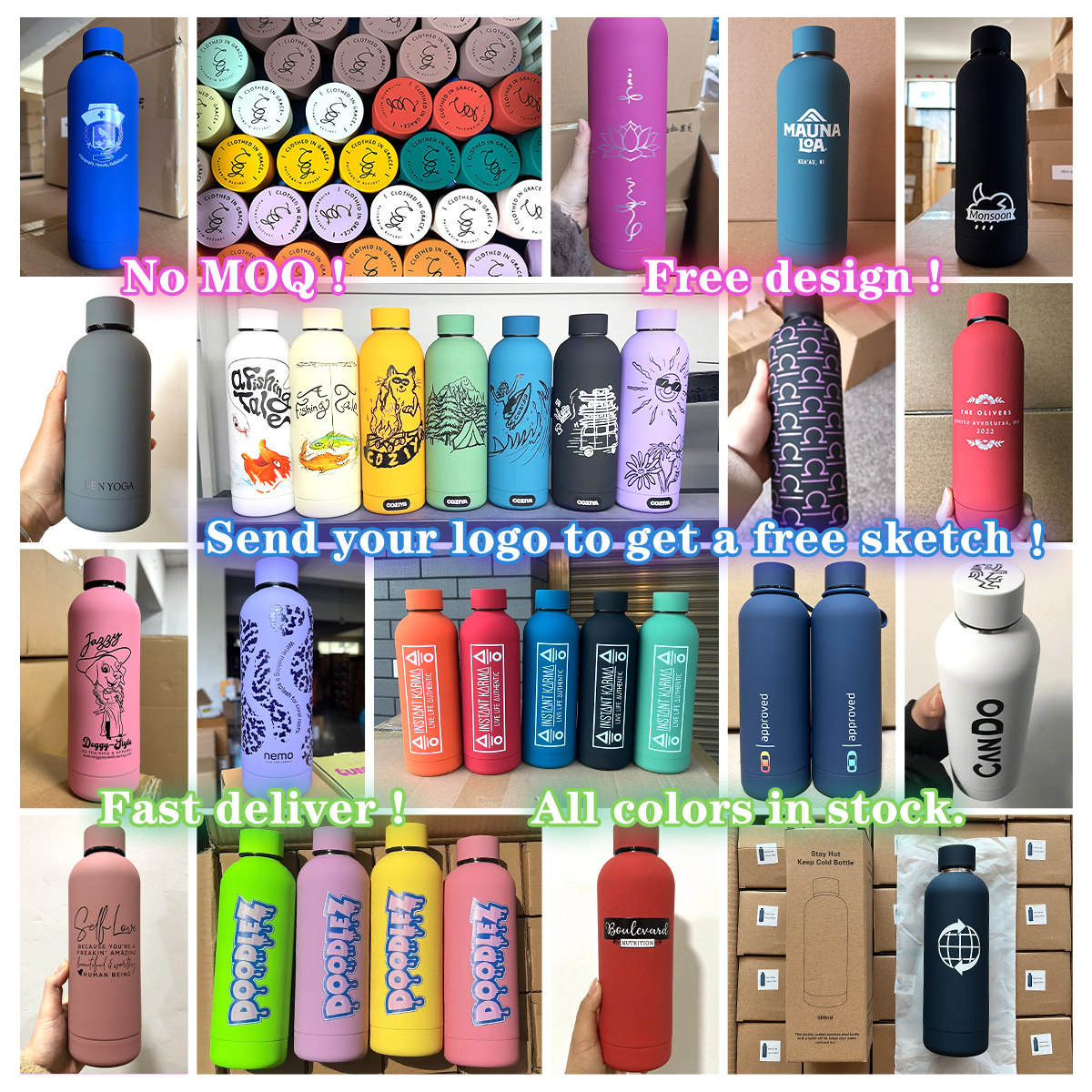 Our vision is to allow people all over the world to drink can be safe and fun, so we have a lot of different cup shapes suitable for use in different scenarios such as home, school, office, travel, mountaineering, and car. 1. Material: I only use high-quality materail above food grade, and can provide relevant test reports. 2. Process: We strictly control each process. According to different cup shapes, we use seamless stretched cup body or water rising process cup body, automatic environmental protection spray paint and plastic spray line, manual polishing, electrolysis, and pumping for more than 6 hours Vacuum, 3 times temperature measurement to ensure the best quality 3. Customization: We have a professional design team that can do logo design, packaging design, cup design, and develop multiple new cups every year to keep up with market trends 4. Service ability: We have more than 10 years of industry experience, one-stop service from production to sales, if you are a purchaser with rich experience, we have enough experience to realize your plan, if you are just a start-up, We can also give enough support to small businesses who are struggling with their own personal business, and you can customize your own logo with 1 carton | ||||||||