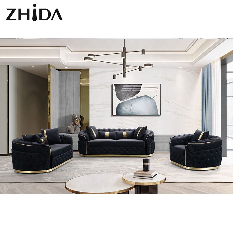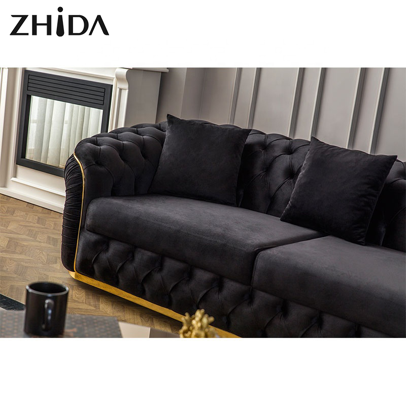 Factory Outlet European Style Luxury Metal Feet Chesterfield Sofa Couches Velvet Pull-out Plush Living Room Sofa Set Furniture