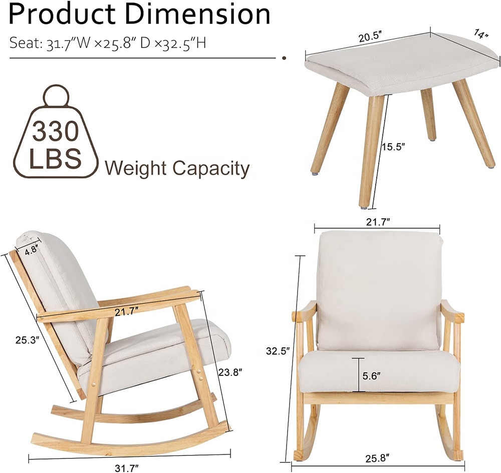 * 【Easy to Assemble】 Detailed instructions and installation tools are included. Generally, with the help of instructions, you can complete the assembly of this rocking chair with ottoman within 30 minutes.