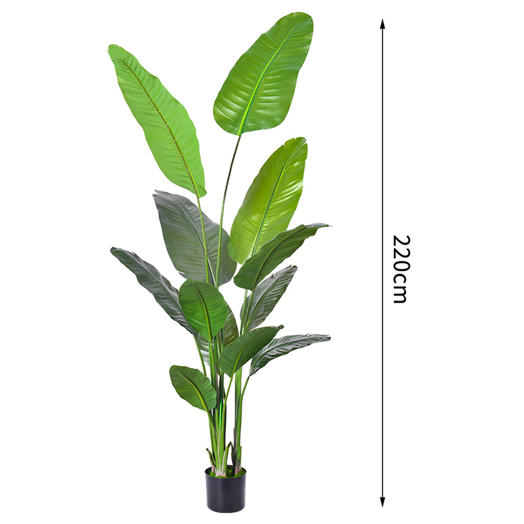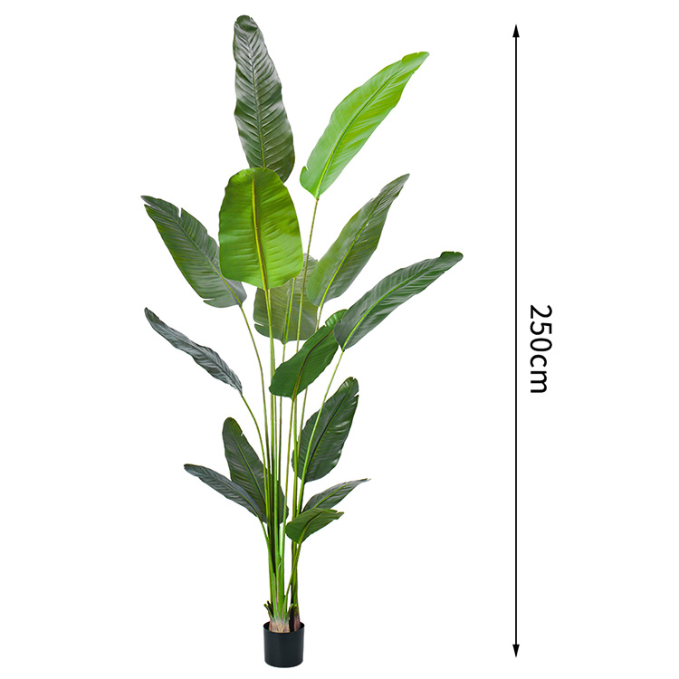 Material | 1).Leave: silk fabric, PE can be anti-UV plastic, or fire-retardant foliage 2).Trunk: plastic sculpted stem 3).Base: Our standard base is a plastic pot or steel plate |