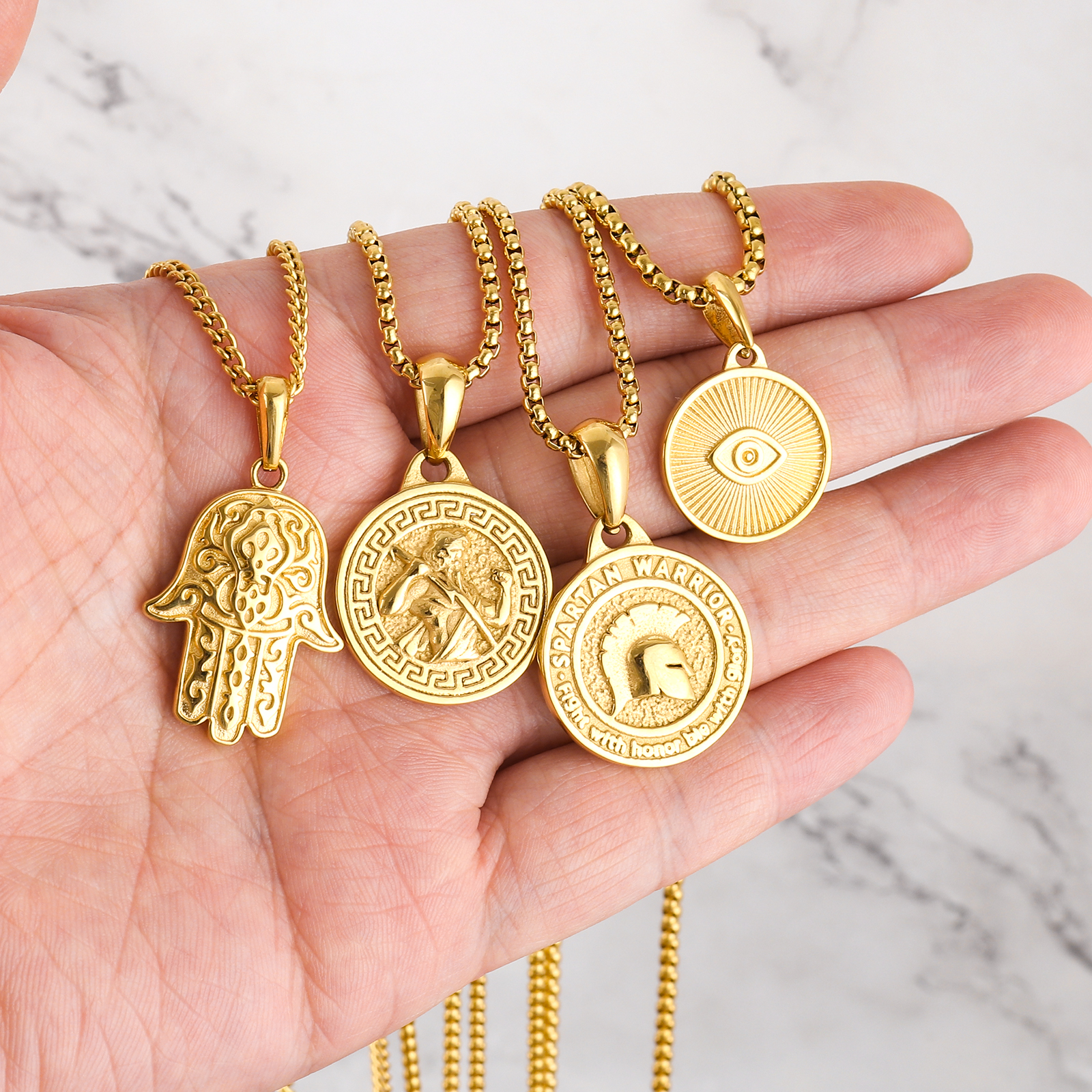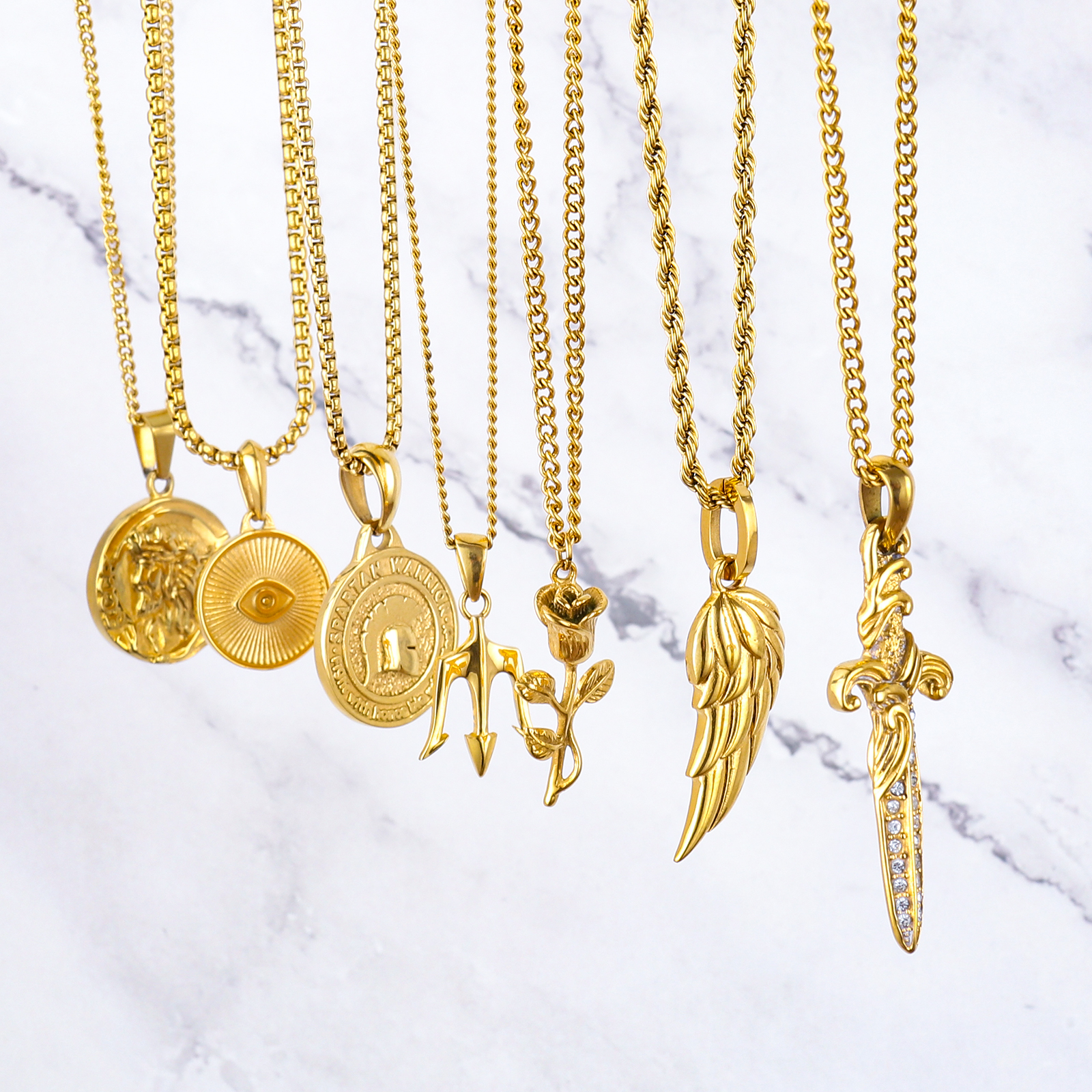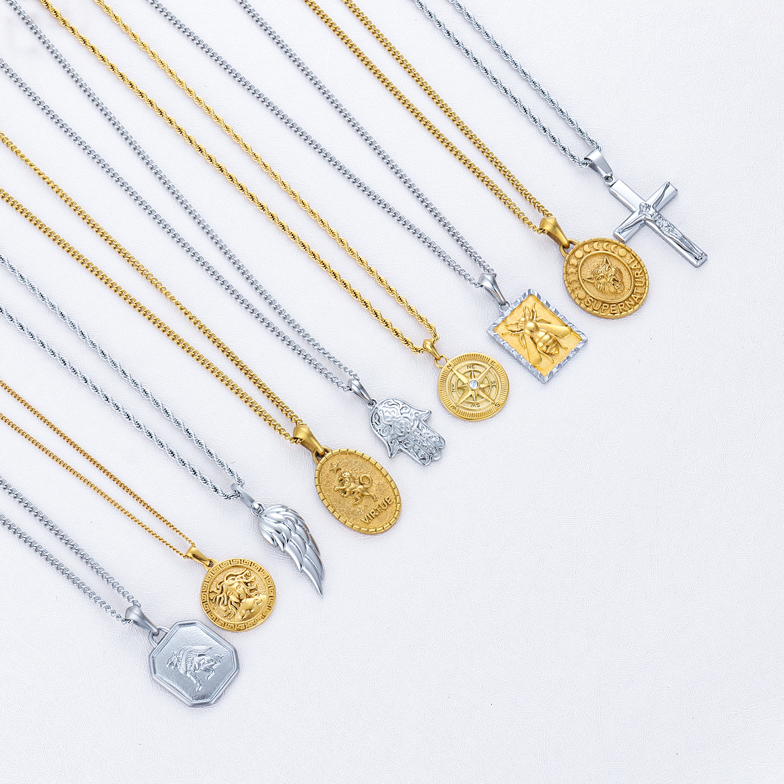 Item Name | 2024 18k Sliver Gold Plated Lion Coin Bee Compass Animal Fashion Jewelry Jesus Cross Pendant Stainless Steel Necklace For Men |