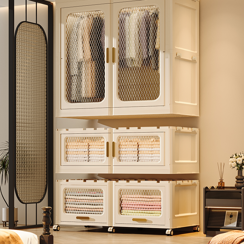 Home Collapsible with Doors Stackable Storage Box Folding bedroom furniture Closet Cabinet plastic wardrobe clothes organizer