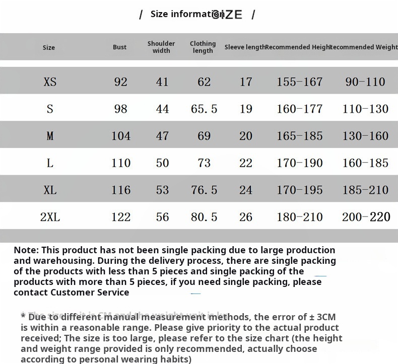 Size | XS-2XL | ||||||