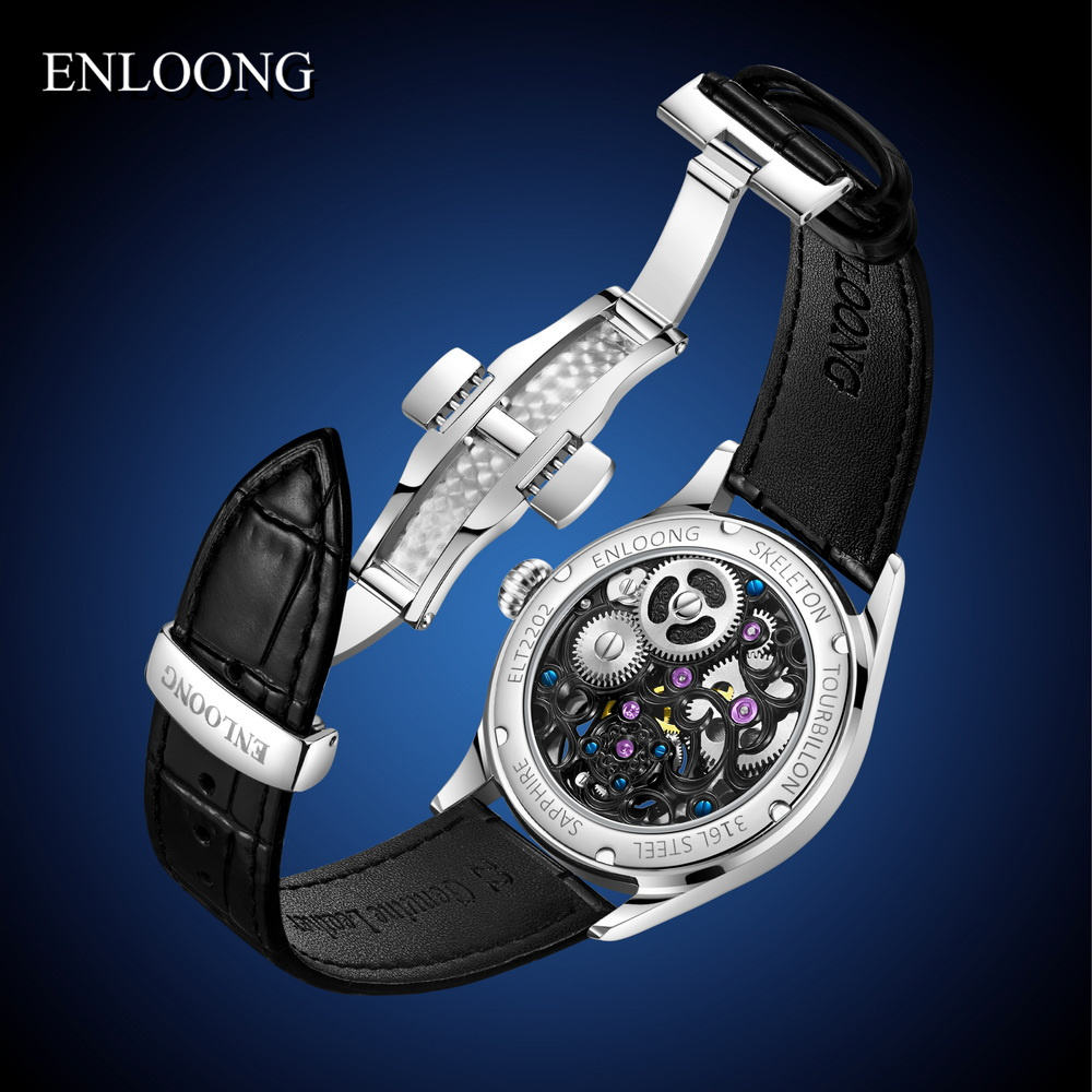 ENLOONG Best Affordable Luxury Tourbillon Watch Skeleton Premium Watches Power Display Moonphase Tourbillon Watch for Men