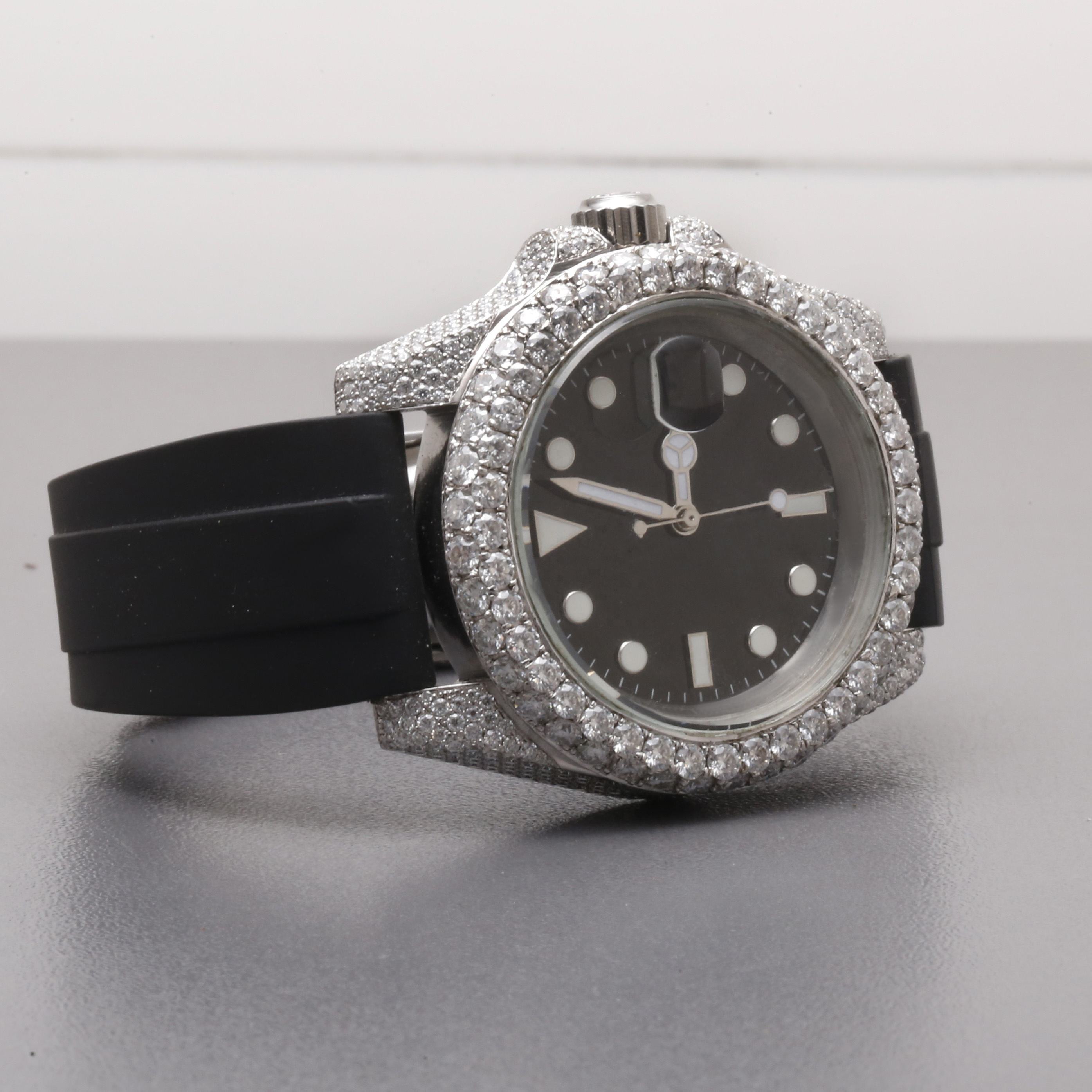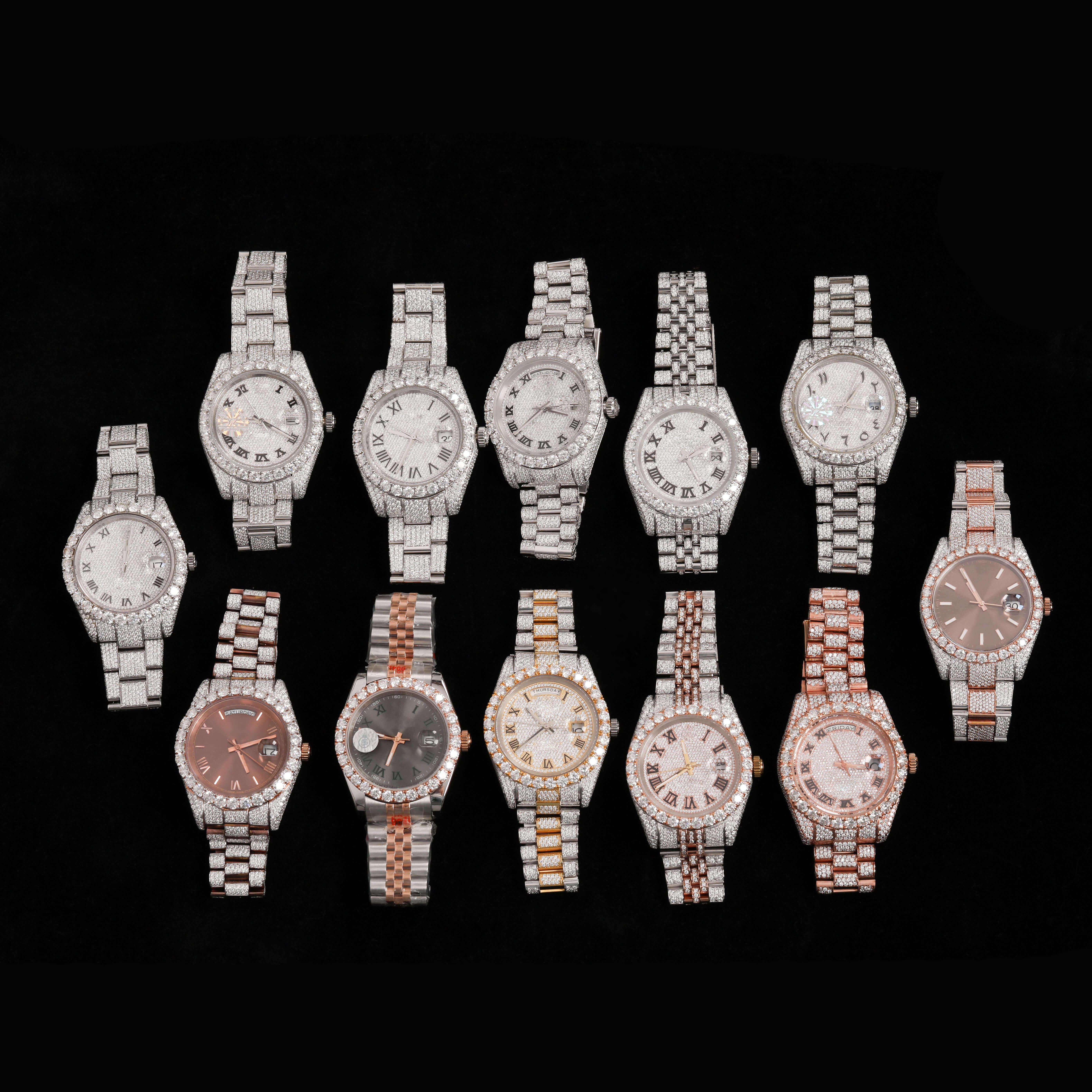Original Branded Handmade Premium Quality ROUND DIAL HALF Iced Out Unisex Luxury Fine Jewelry Moissanite Diamond Watch