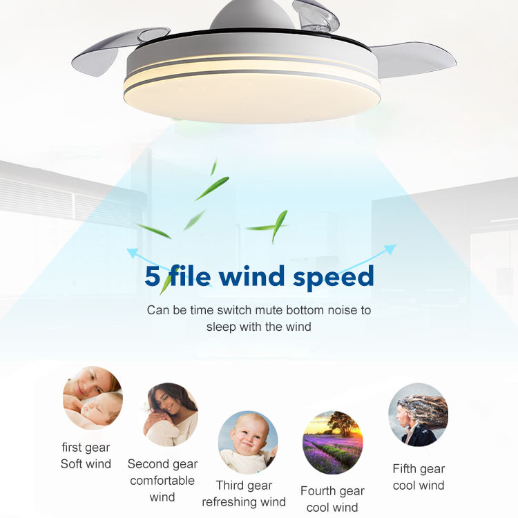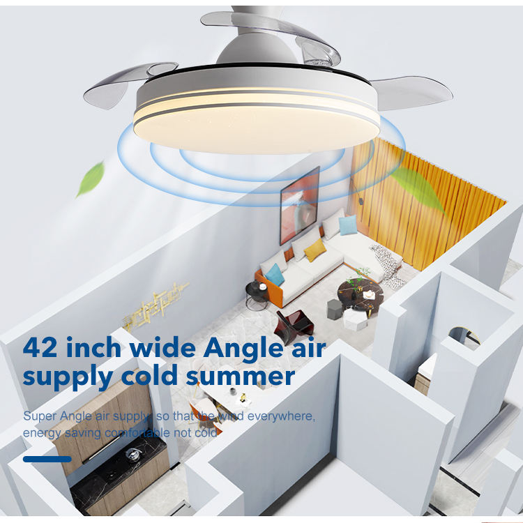 Modern Smart Home Appliances Decorative Lighting Remote Control Invisible Ceiling Fan With Light