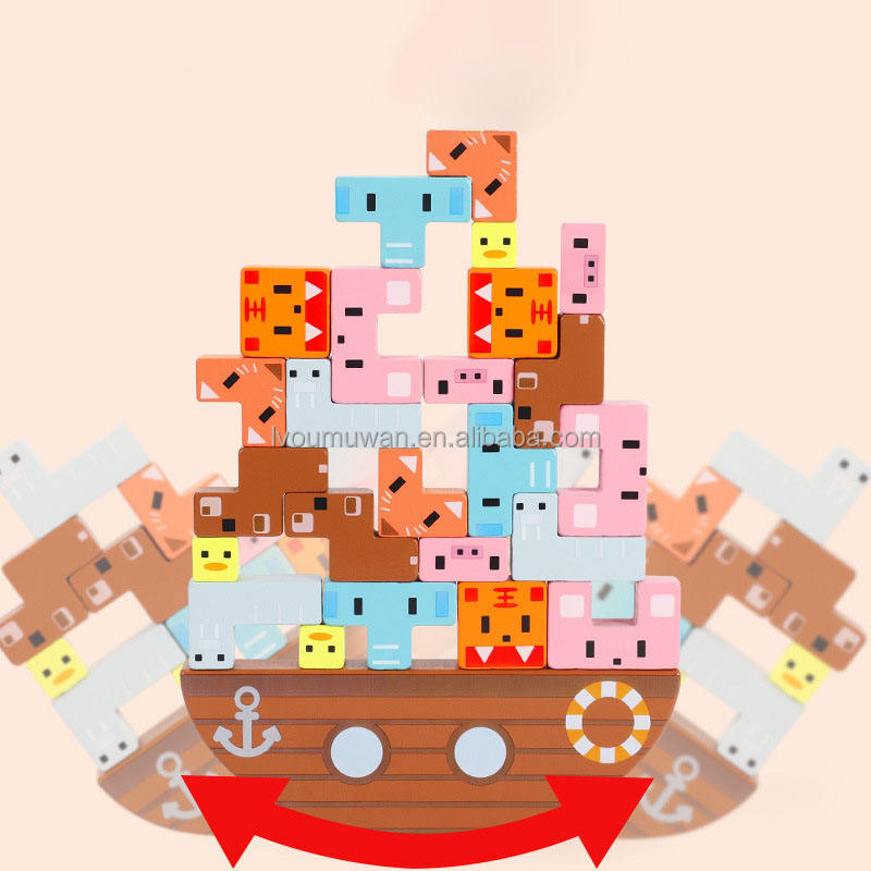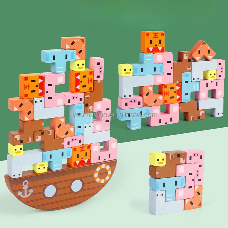 2024 Children's Wooden animal Balance Stacking toys Montessori Building Blocks Educational Toys for children