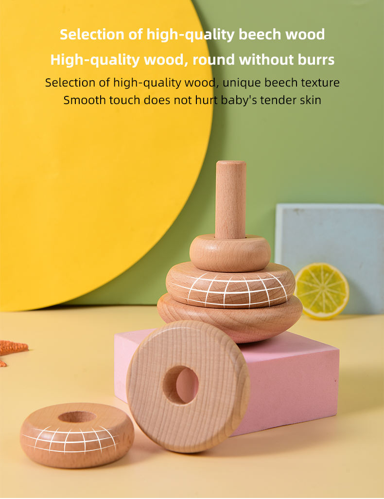 Educational toys Children Wooden toy nature color Tower Stack high beech wood Baby Early Educational Toys Game