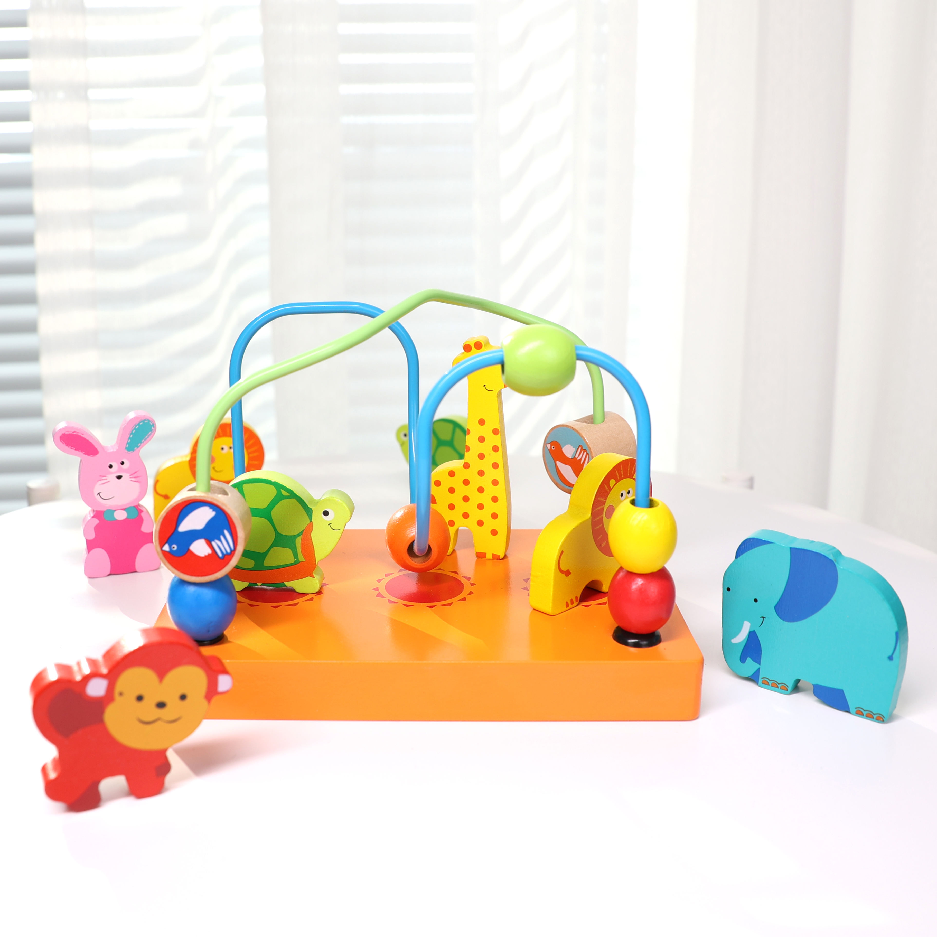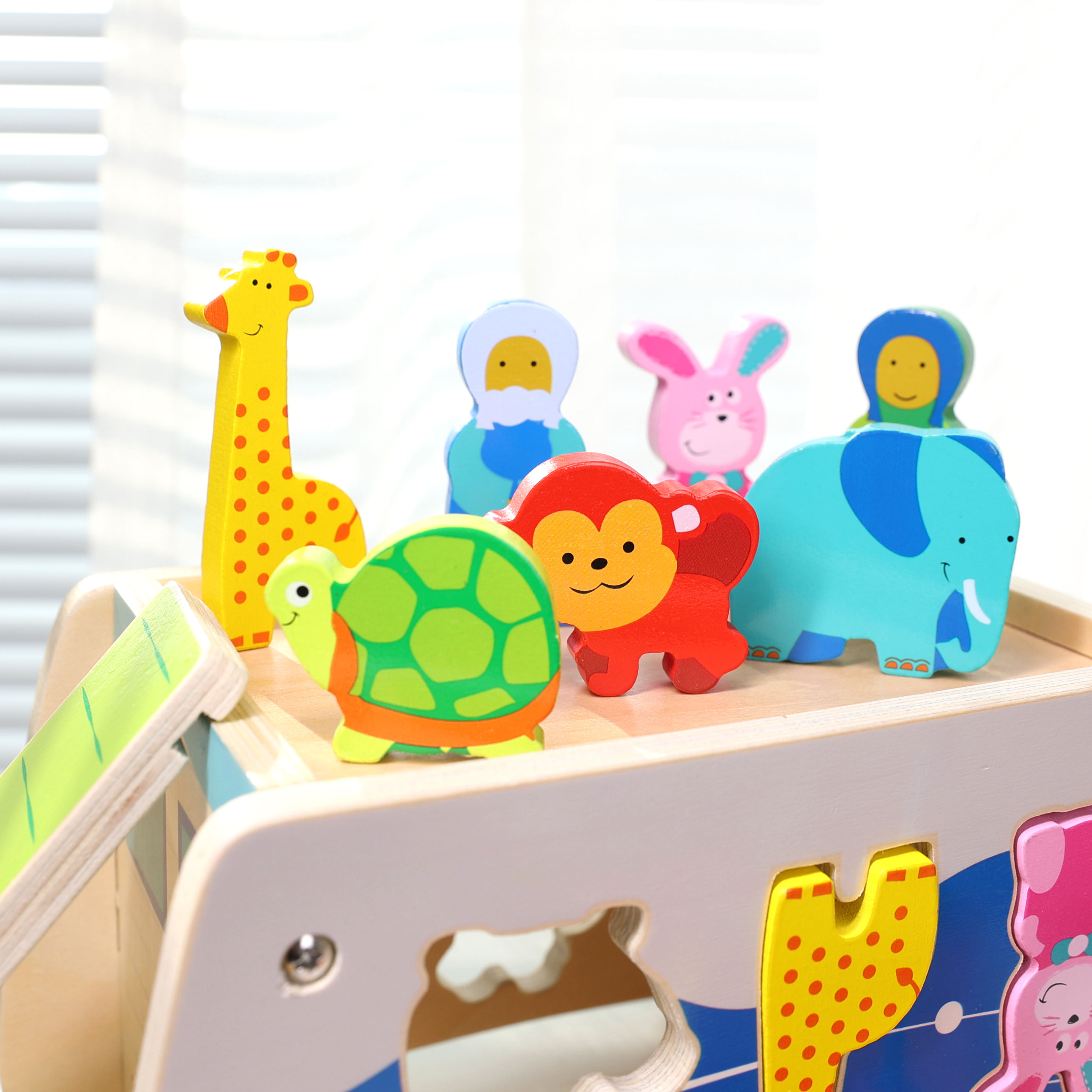 Children Early Educational Bamboo Pull Along Noah's Ark Wooden Animal Car Toys