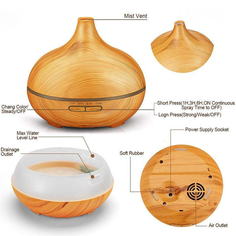 Household Smart Home Appliances Wooden Grain Ultrasonic Aroma Diffuser With Led Light Essential Oil Perfume Diffuser