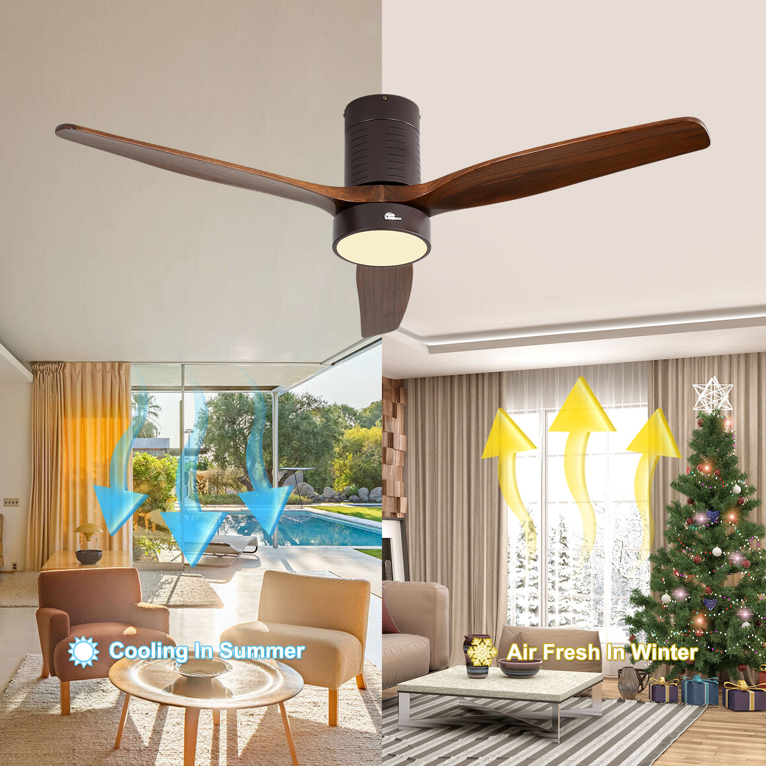 Decoration Home Air Conditioning Solid wood Blade Iron Acrylic Lamp Ceiling Fan 220v With LED Light