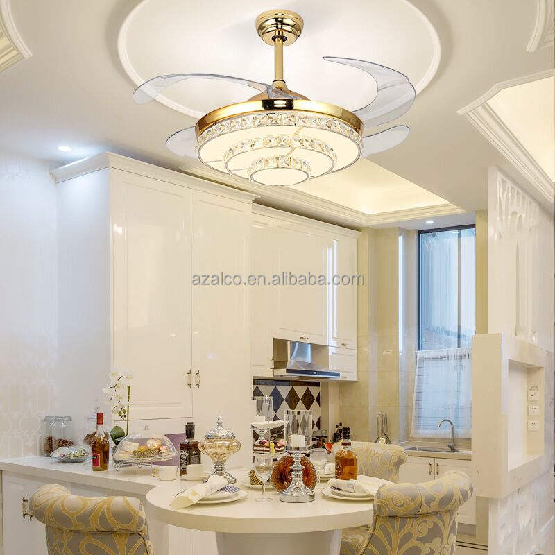 42'' Crystal Invisible Fan Ceiling Light with LED Light Kit and Remote Control Fan Chandelier Home Fan Lamp Decor Silver