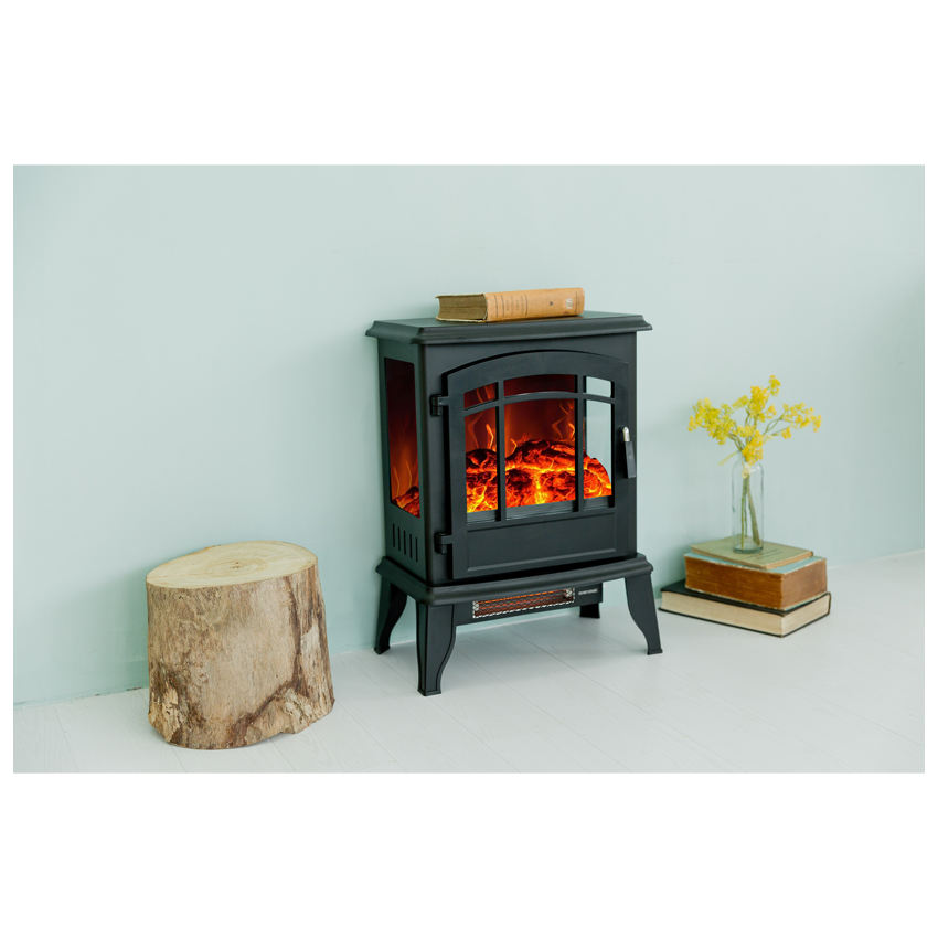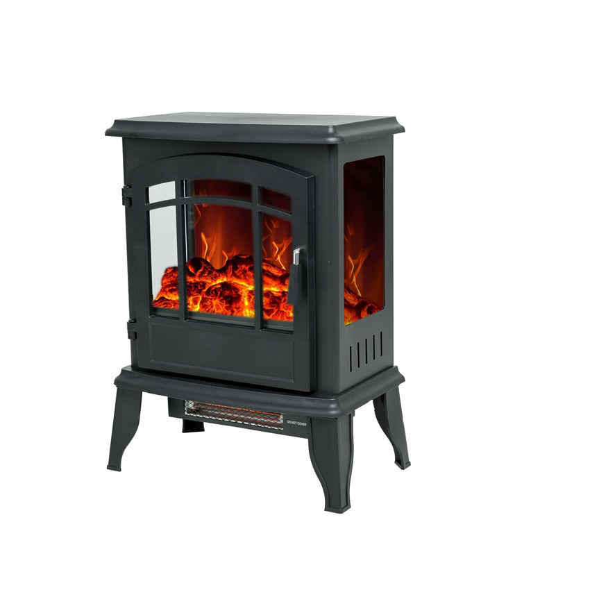 high quality indoor small modern decorative black 3 side freestanding self standing electric fireplace