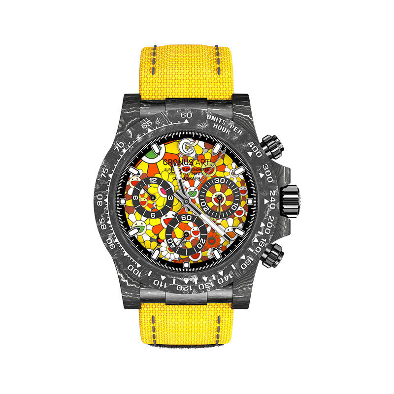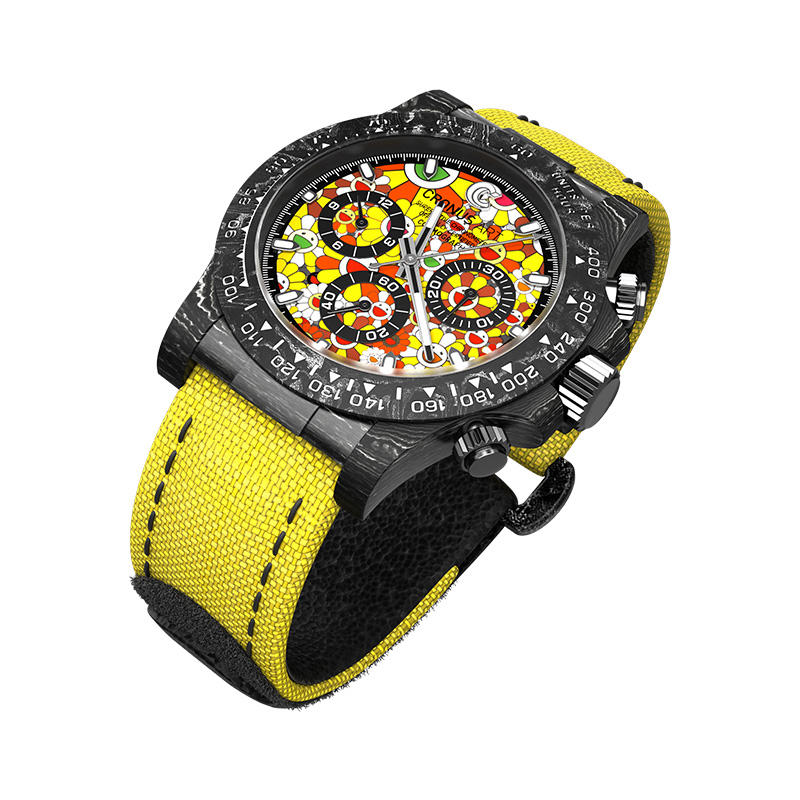 Unique features Racing style 40mm carbon fiber Round case Precision jam tangan pria watch for men