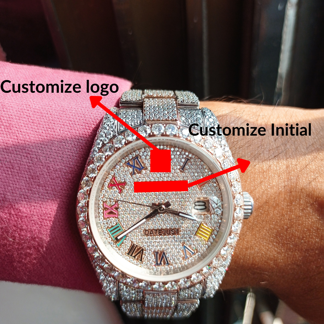Multi Colored Numericals Fully Iced Out Moissanite Watch Rainbow Luxury Watch/ Men Luxurious Premium Branded Moissanite Watch