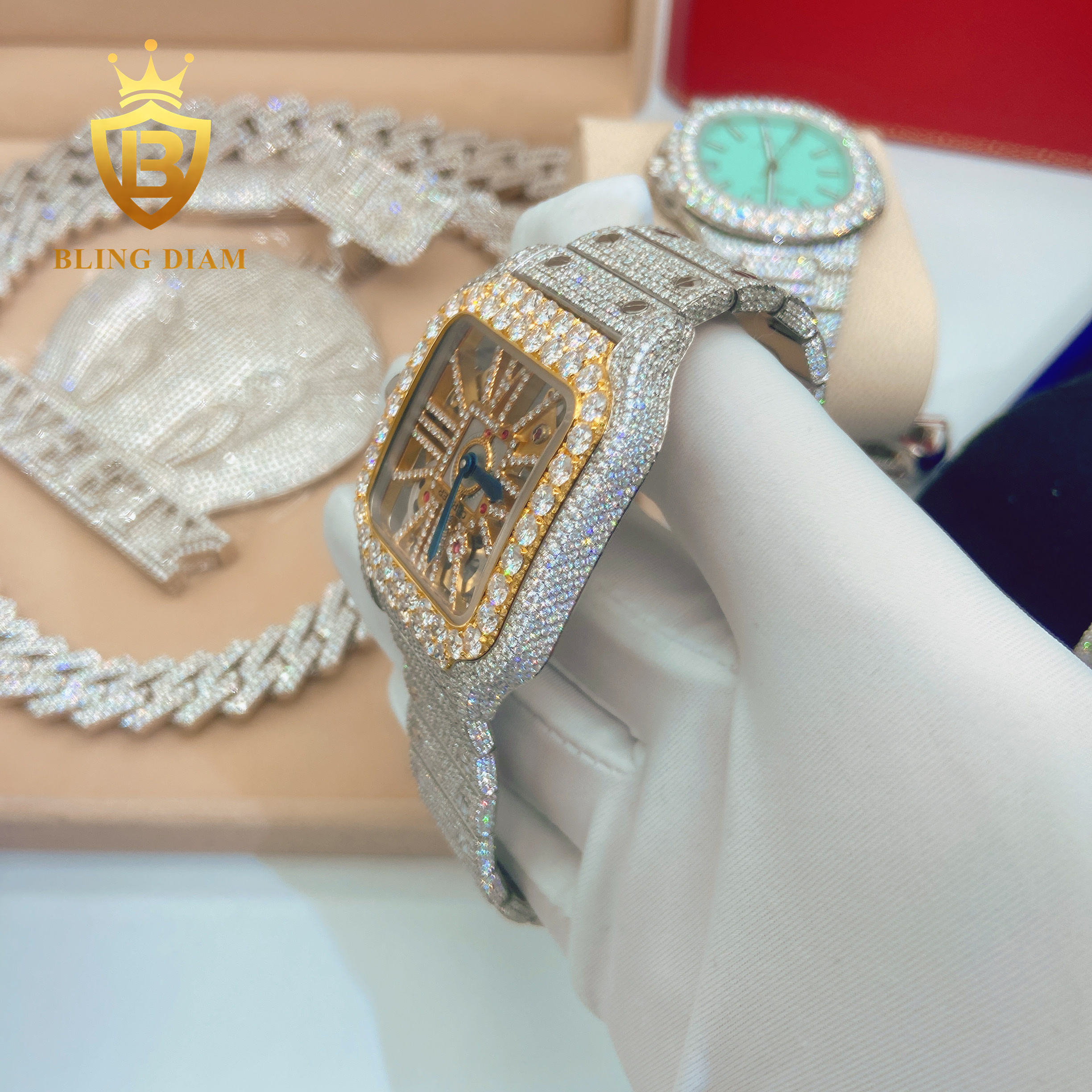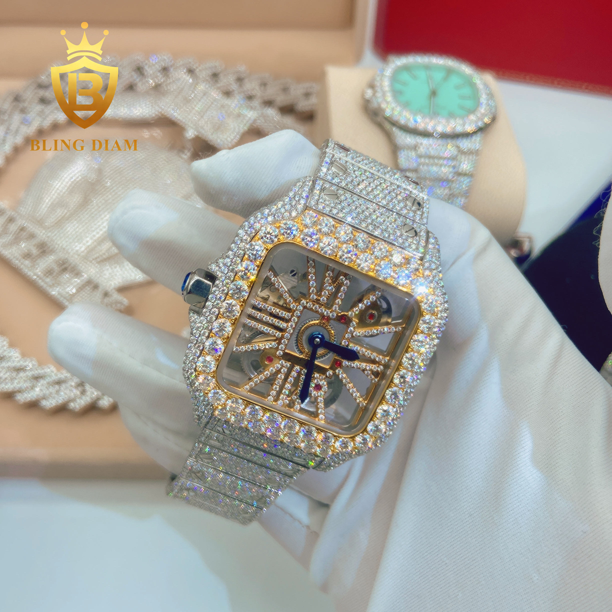 Iced out Pass diamond test Stainless Steel Mens Full Diamonsd Luxury Watch Mens hip hop jewelry Mechanical Moissanite Watch