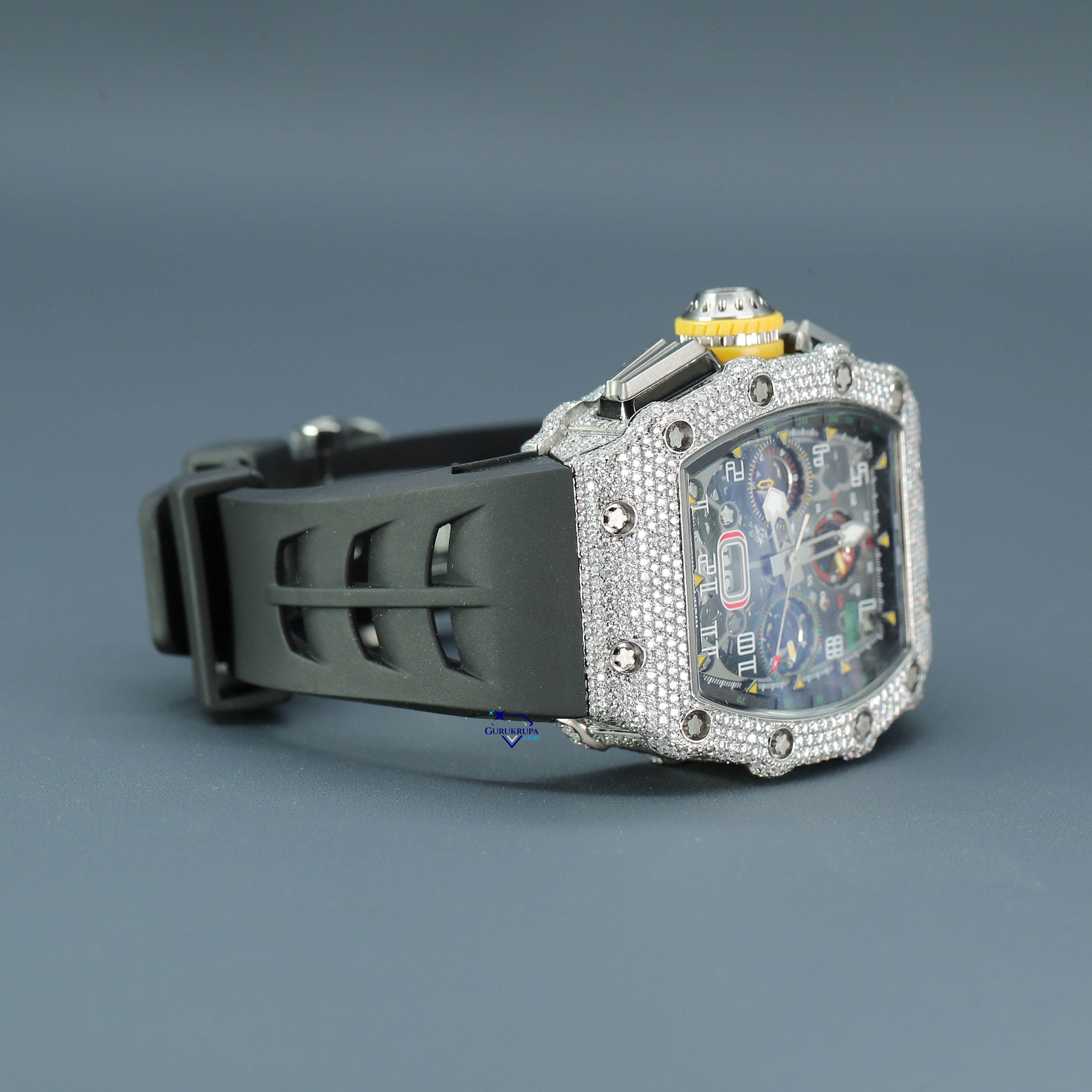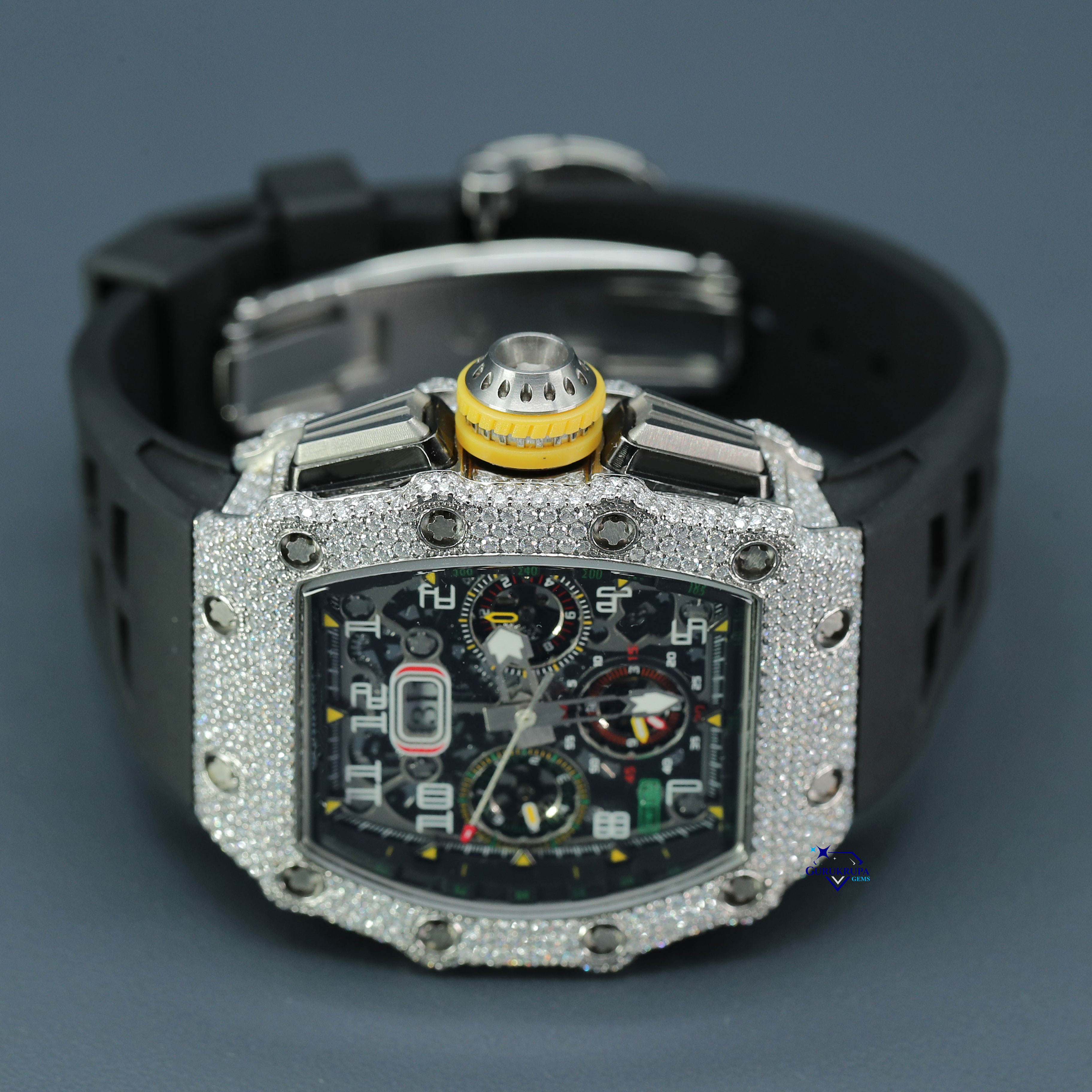 Most selling mens hip hop watch made of stainless steel with VVS clarity moissanite round cut diamonds trending fashion jewelry