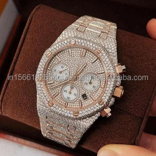 Gold Plated luxury bezel fully iced out moissanite diamond watch with hip hop style for gifting or business purpose from india