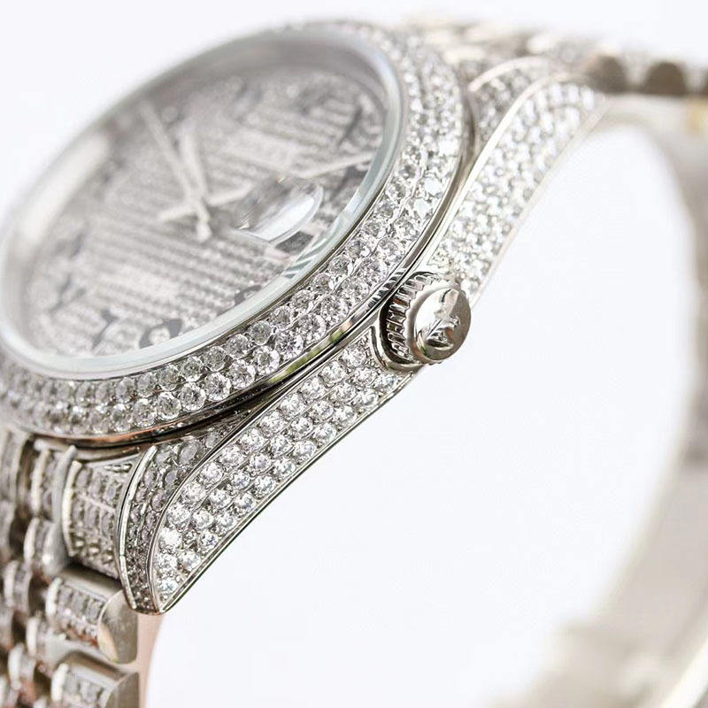 Luxury Hip Hop Iced Out Diamond Moissanite Wrist Watch VVS Flower Setting Diamond Moissanite Watch