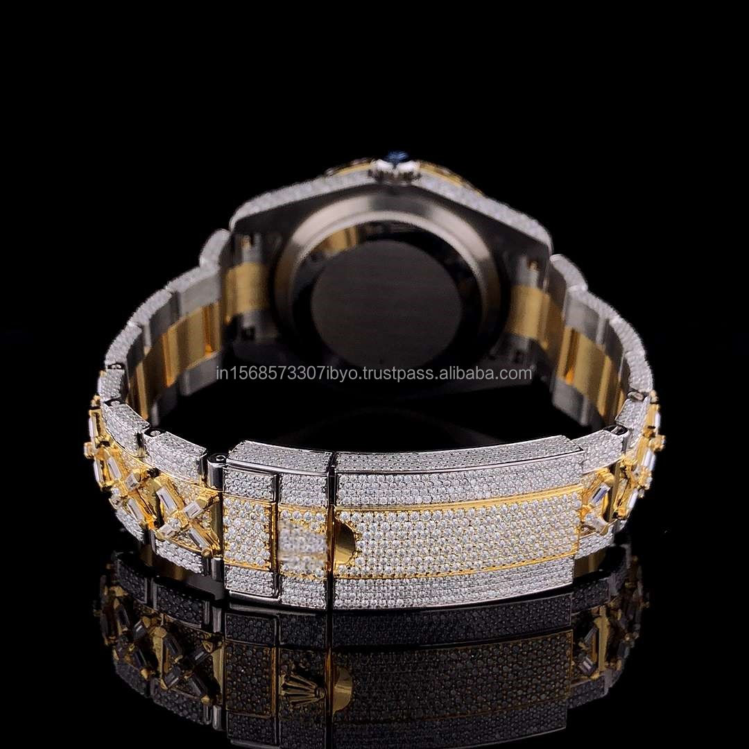 Two Tone Yellow Gold Silver VVS certified Moissanite trending premium diamond watch for men and women Hip Hop Watch