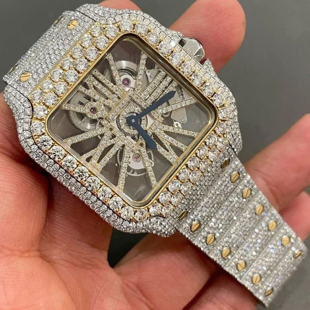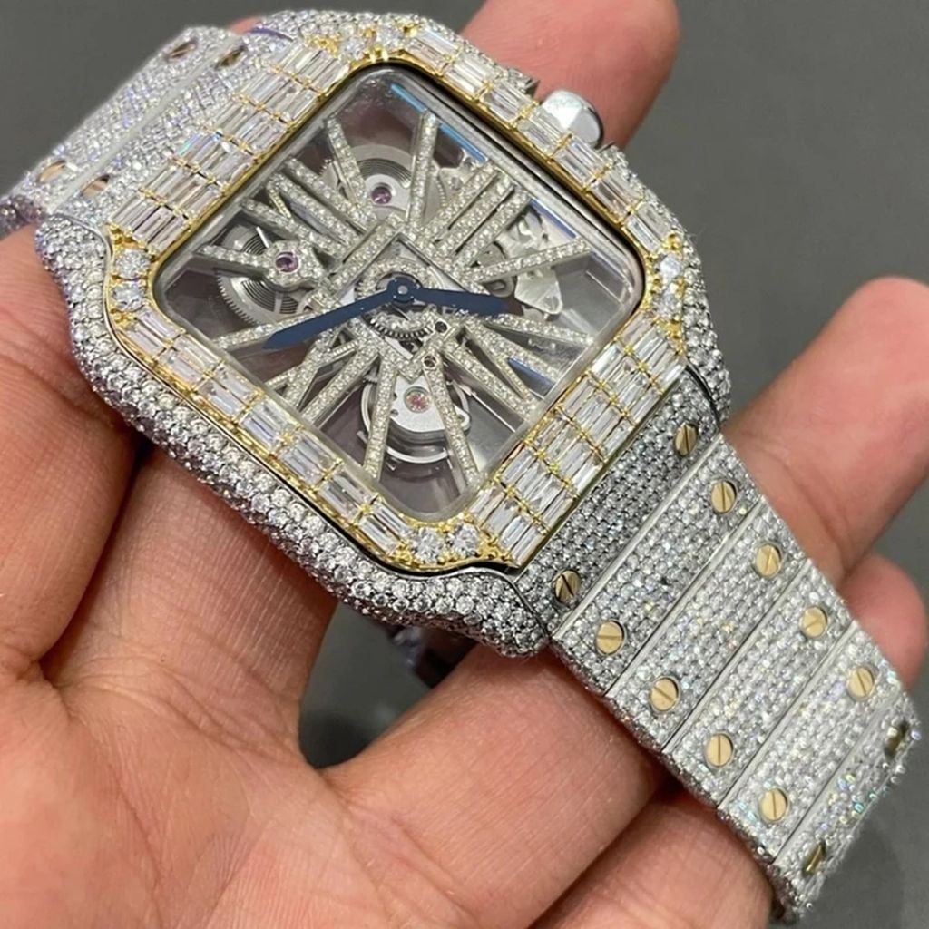 Pave Setting Stainless Steel Luxury VVS Moissanite Watch Diamond D color Custom Brand Mechanical Watches
