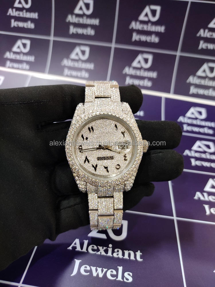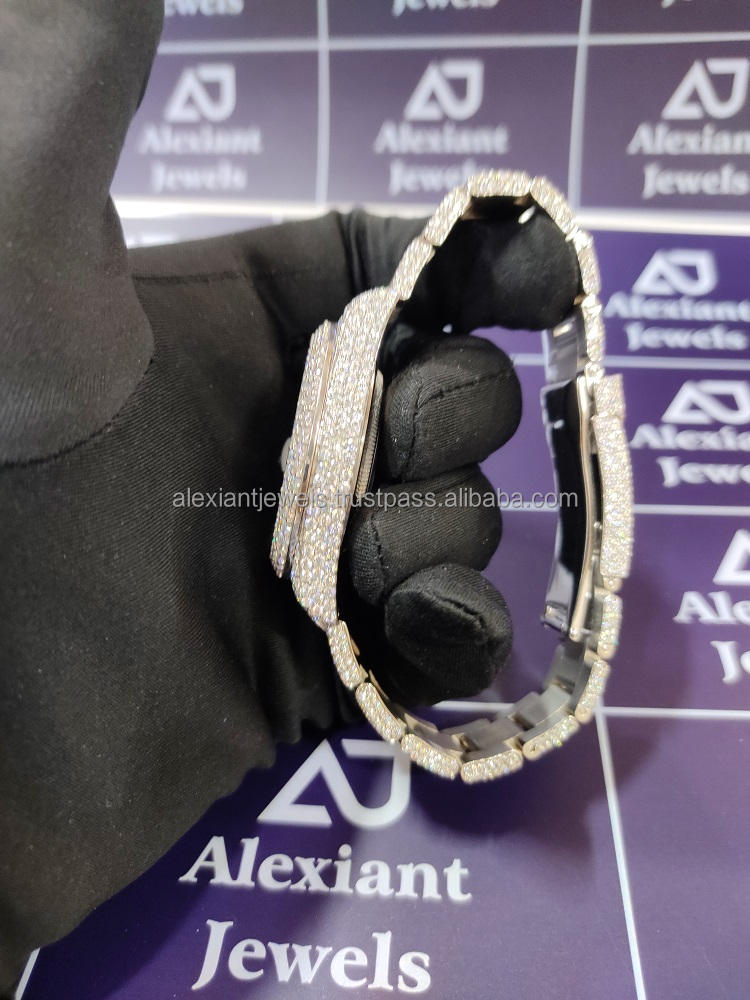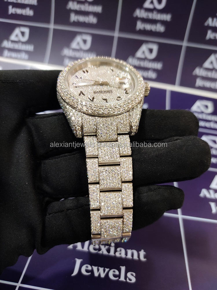 Best Selling Top Brand Luxury Bling Bust Down Full White Moissanite Diamond Micro Setting Wrist Watches at Wholesale Price