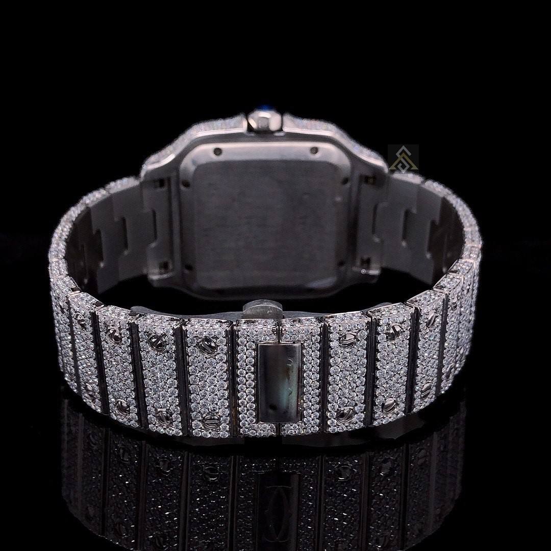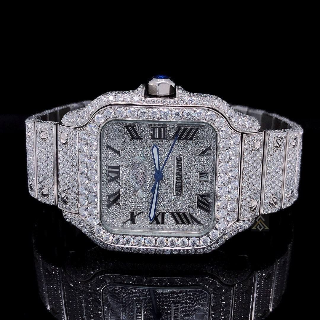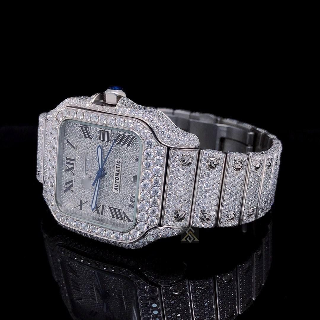 Custom Iced Out CVD Moissanite Diamond Mechanical Movement Watch Set Luxury Quartz Watches Diamond Bracelet Watch Bands Jewelry