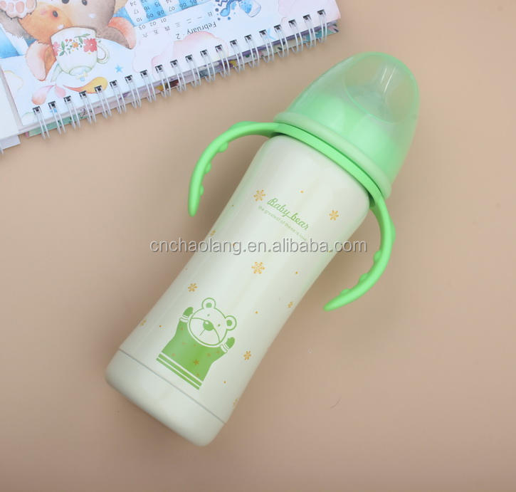 Eco Friendly 240ml and Baby Bottles Feeding PP Stainless Steel Print Pattern Baby Milking Maker Customized Color Yes Handle