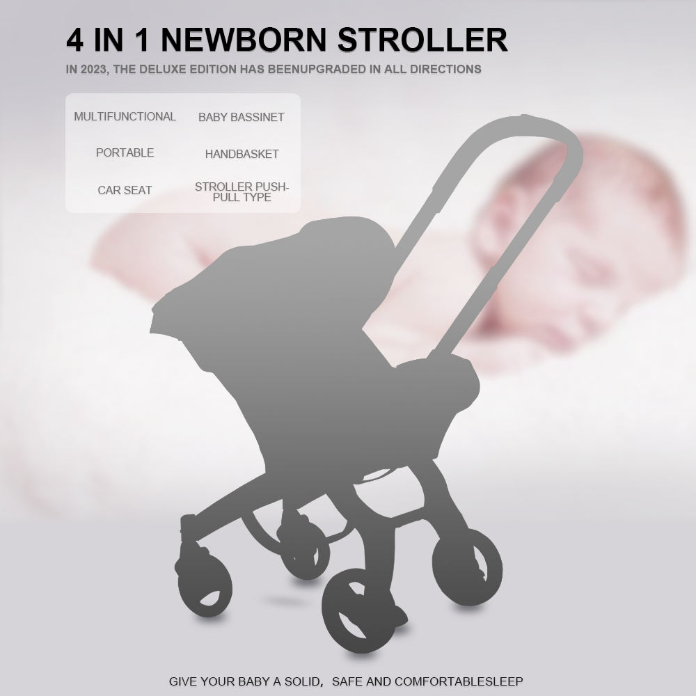Luxury Stroller Baby 4 in 1 Trolley Newborn Baby Car Seat Stroller Travel Pram Stroller Baby Bassinet Pushchair Carriage Basket