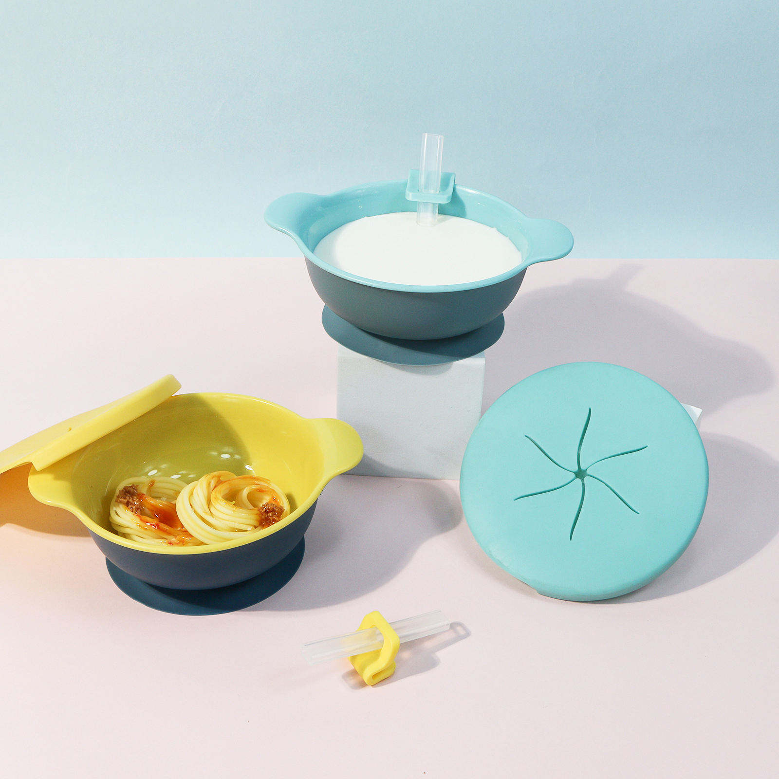 2023 New Non slip PP Children's Feeding Bowl with Suction Cups Silicon Cartoon Snack Plate Bowl for Newborn Baby