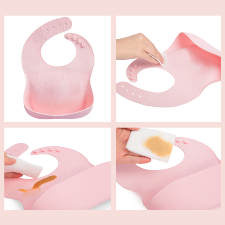 Infant Feeding Products Custom Washable Baby Silicone Bibs Waterproof With Pocket