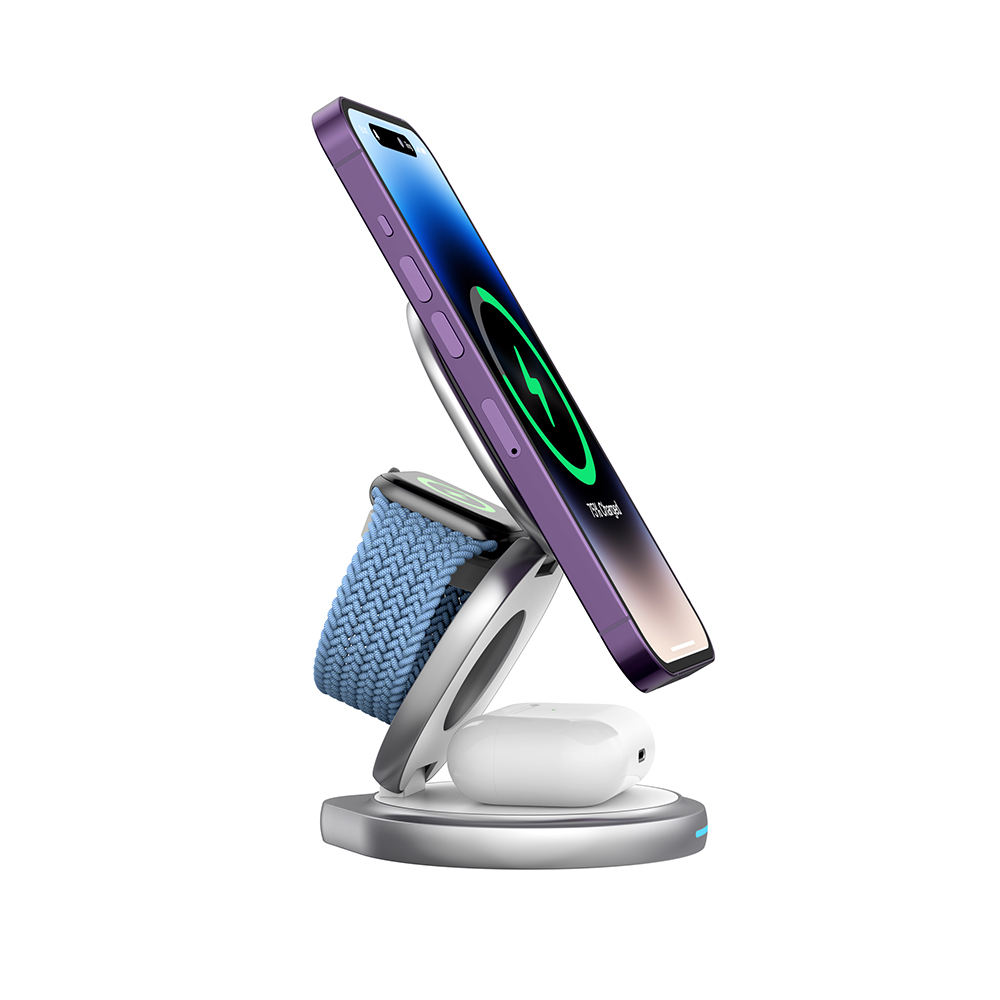Cyboris New 3 in 1 Wireless Charging Station Qi 15 W Fast Portable Foldable Wireless Charger for Smart Mobile Phone