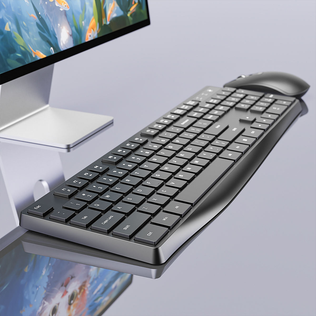 Full Size 104 Keys 2.4G Office Silent Computer Keyboard Multimedia Wireless Keyboard and Mouse Combo for PC Tablet Laptop