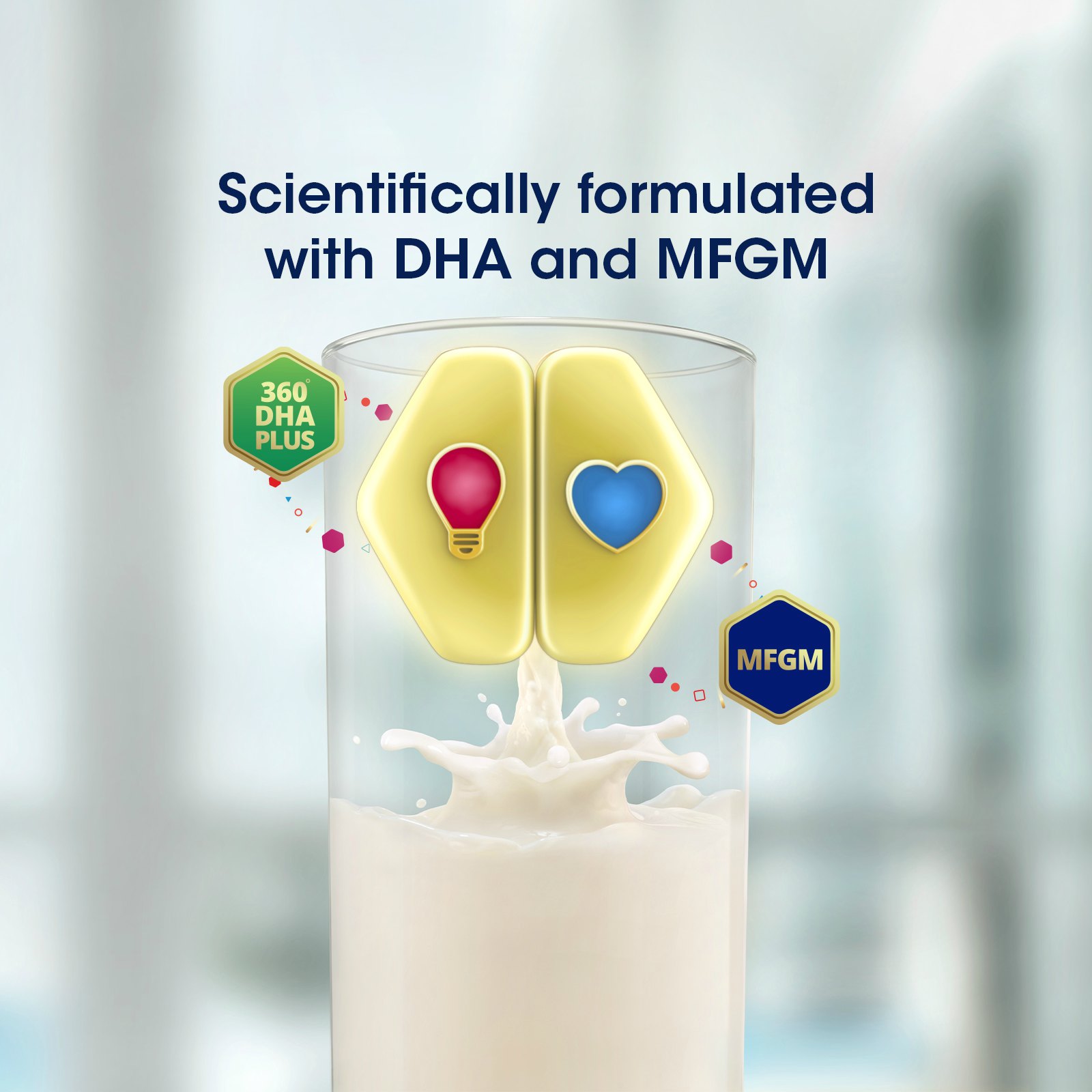 • Milk Fat Globule Membrane (MFGM) is a natural source of phospholipids and spingomyelin, derived from whey protein Formulated with 360’ DHA Plus to help meet recommended daily DHA intake*.