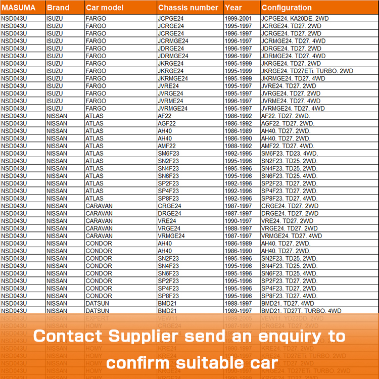 Nsd043u Masuma Car Auto Parts Accessories Stainless Steel Clutch Disc 30100-43g10 30100-wa404 5-86104-512-0 For Isuzu Fargo