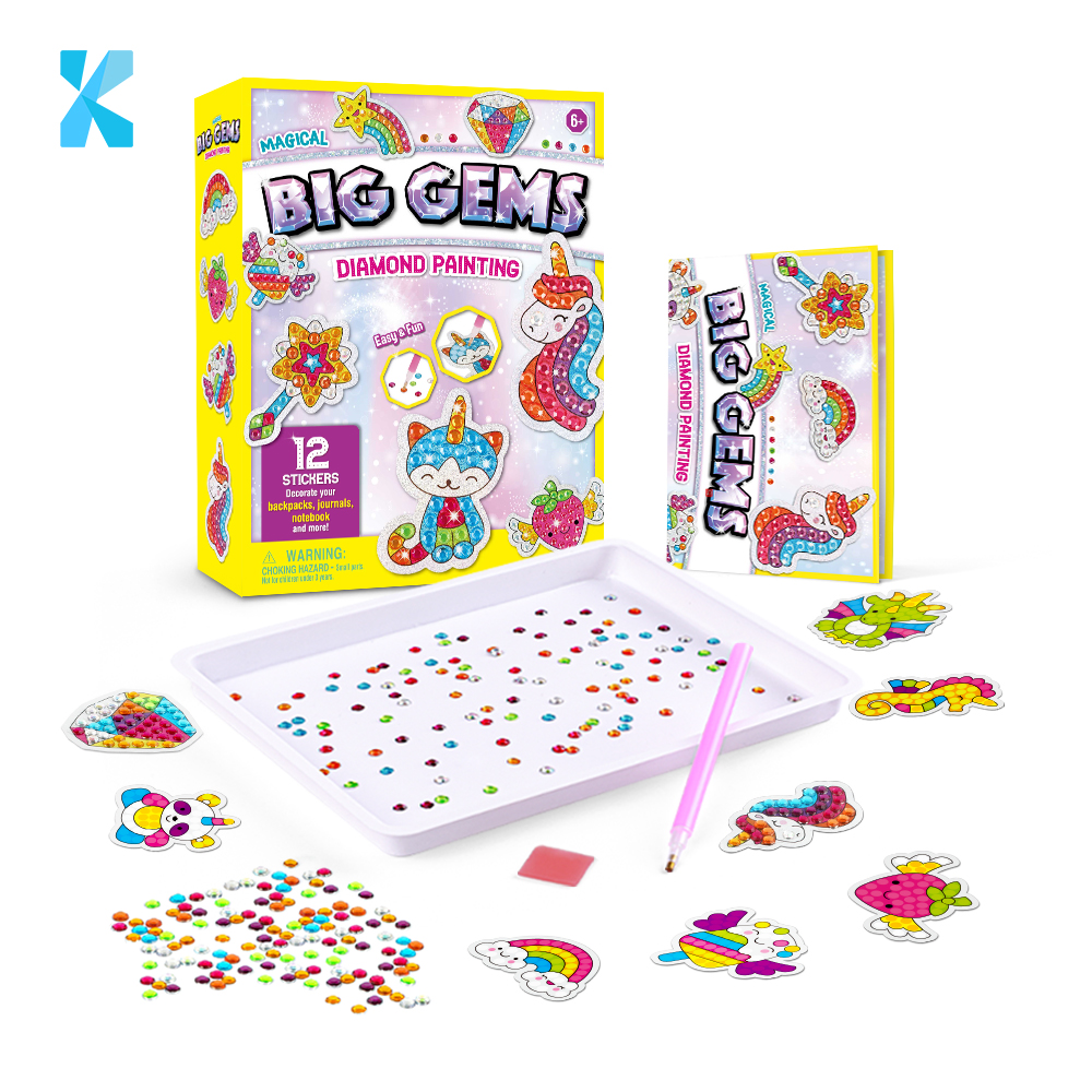Contents | Unicorn & Fairy, 6 Color Paints, 6 Metallic Paints, 2 Brushes, Star Sequins, Sticker, Gems, Glitter, Instruction Sheet. |