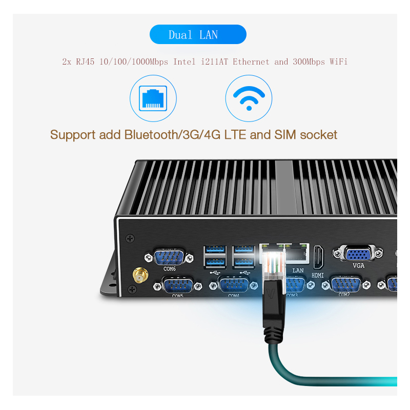 Package Content | 1x Mini PC 1x Power Adapter 2x WIFI antennas 1x SATA power & data cable (send by stock) 1x VESA mount 1x User Manual |