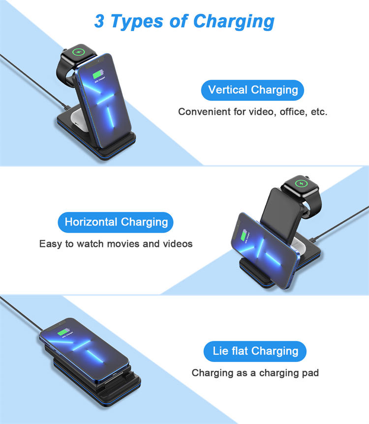 (3).3 in 1 wirless charging Stand,For Iphone AirPods Watch Phone Sametime Wireless Charging