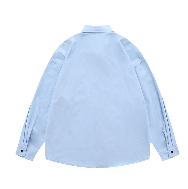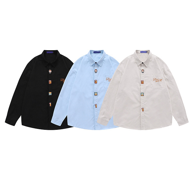 Item | Japan style Plus size men's solid color embroidery logo long sleeve shirt |