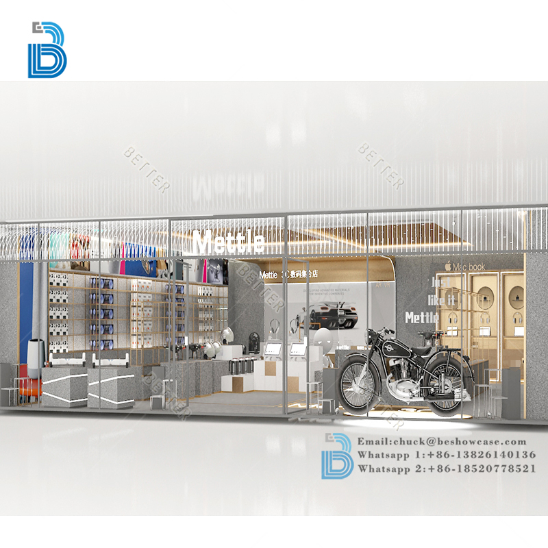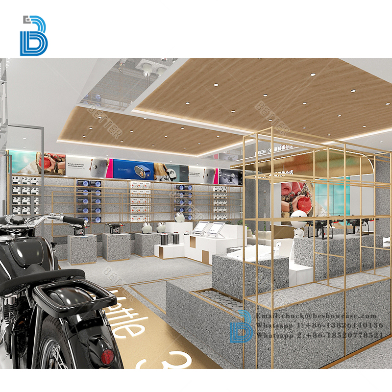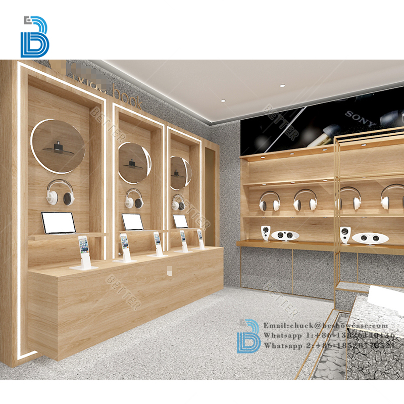 Latest Blue Cell Phone Display Showcase Design Modern Custom Mobile Shop Interior Decoration Ideas For Phone Accessories Store