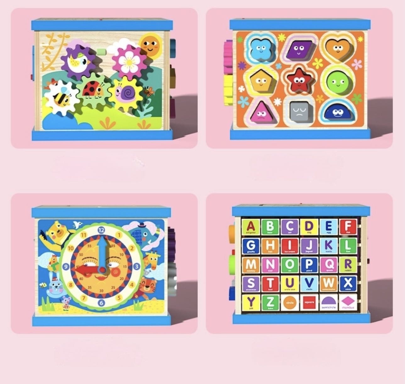 Montessori Wooden Animal Activity Cube | Treasure Chest Bead Maze Game | Shape Matching Educational Toy For Kids