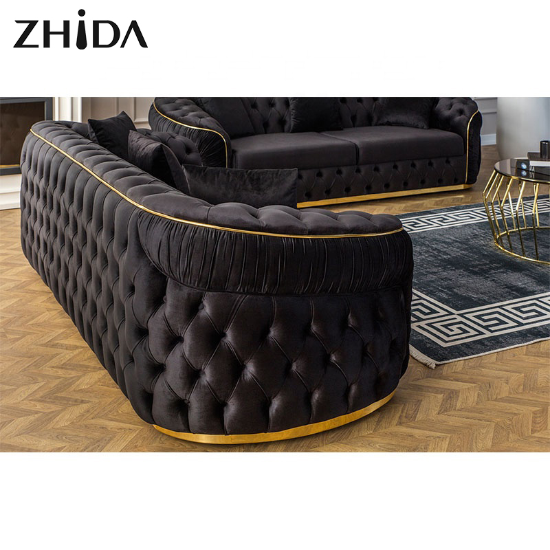Factory Outlet European Style Luxury Metal Feet Chesterfield Sofa Couches Velvet Pull-out Plush Living Room Sofa Set Furniture