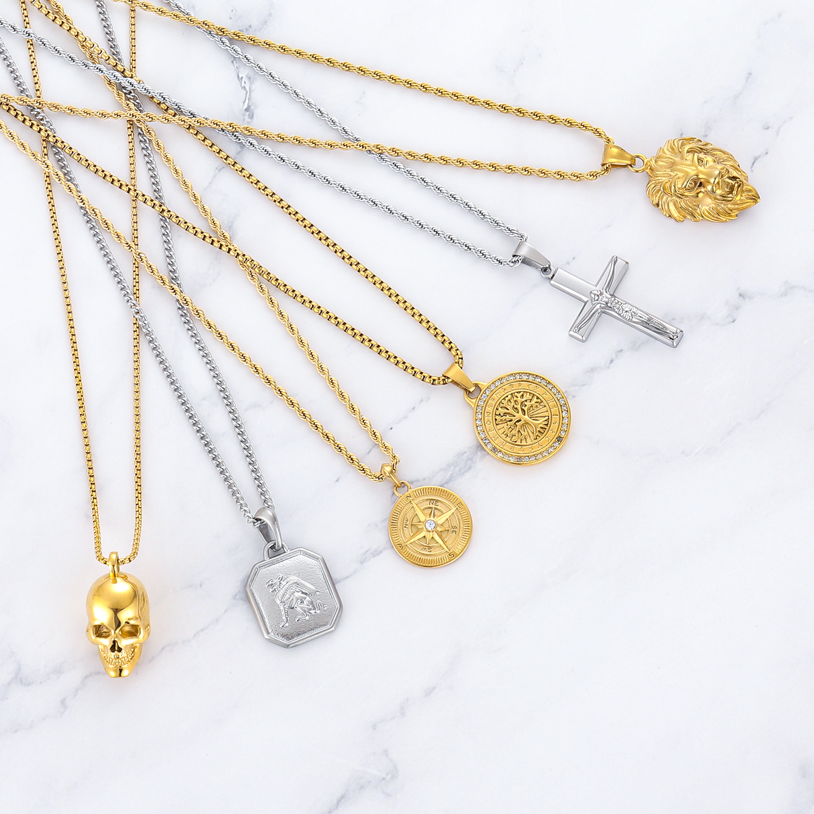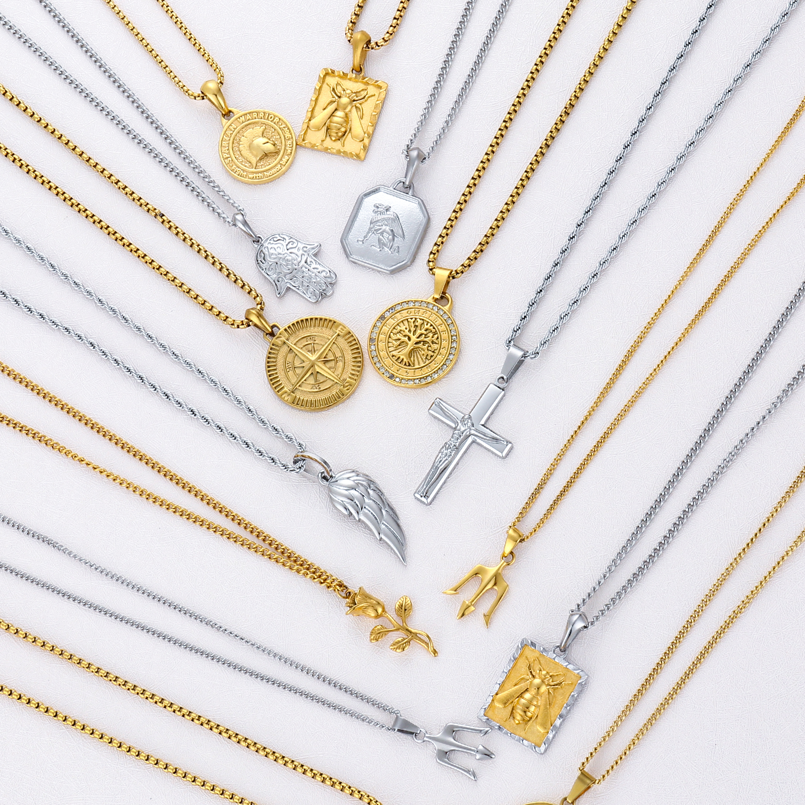 Item Name | 2024 18k Sliver Gold Plated Lion Coin Bee Compass Animal Fashion Jewelry Jesus Cross Pendant Stainless Steel Necklace For Men |