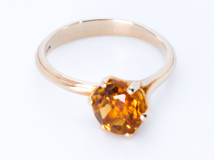 The Egle ring is expertly fashioned from 18 karat rose gold, showcasing a captivating round mixed cut natural Citrine Quartz weighing approximately 2.09 carats, with a diameter of 7.95 mm. Weighing a total of 3.62 grams, this ring is a true embodiment of grace and beauty. Its size is US 6.75, offering a comfortable and versatile fit.