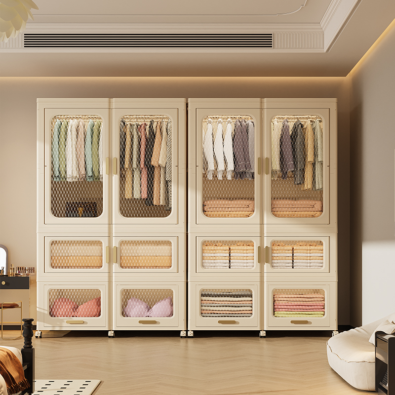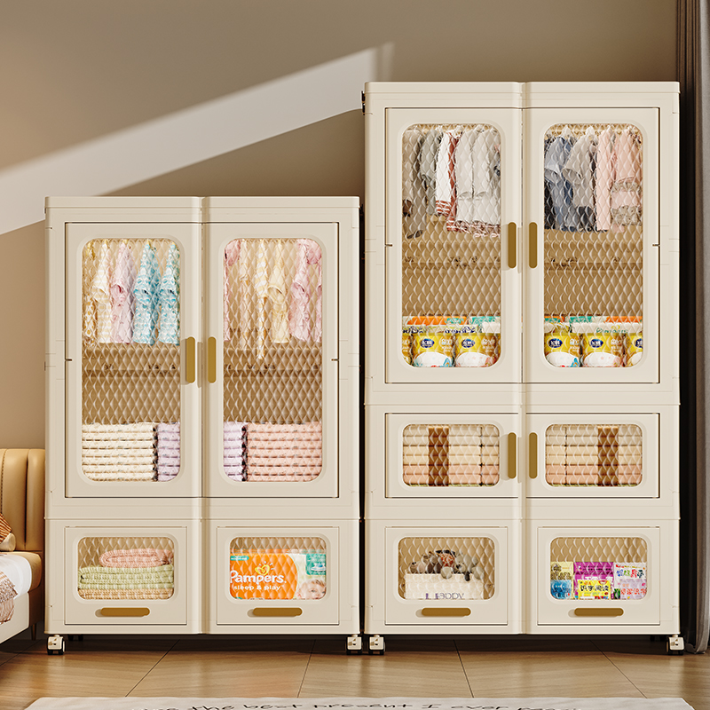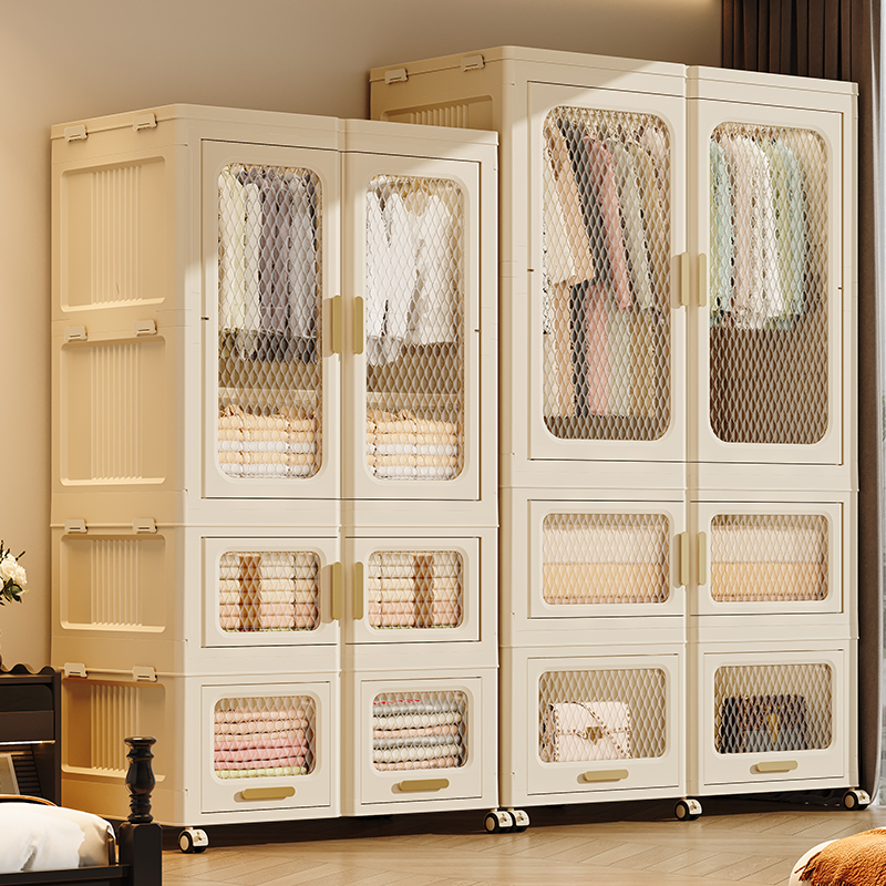 Home Collapsible with Doors Stackable Storage Box Folding bedroom furniture Closet Cabinet plastic wardrobe clothes organizer