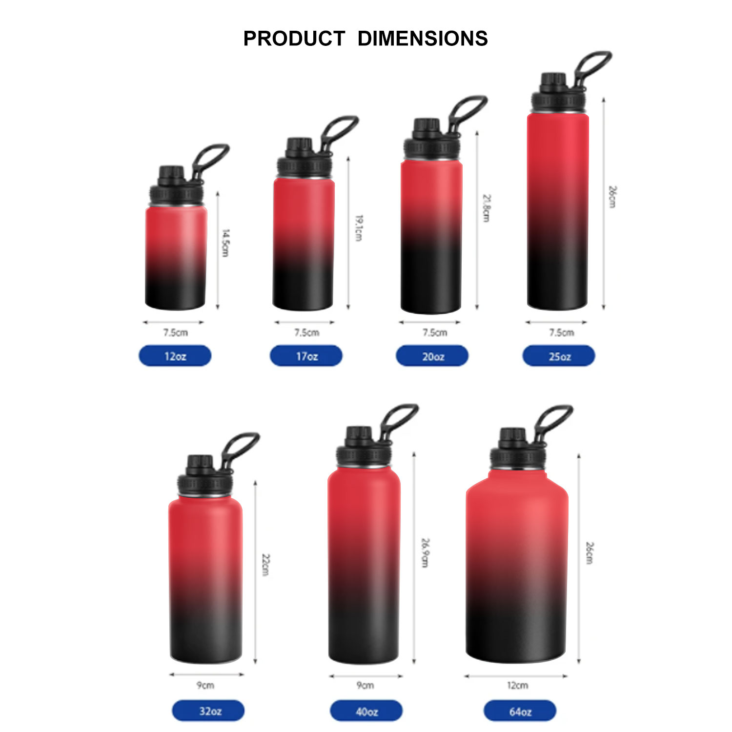Capacity | 12/18/21/25/32/40/50/64oz |